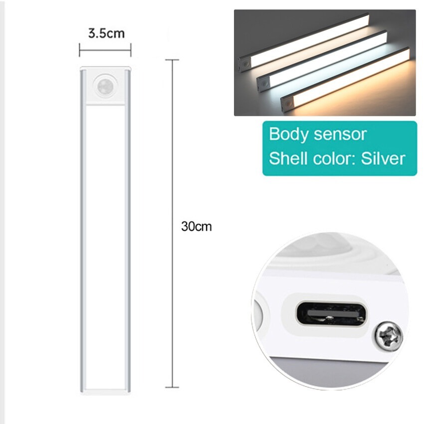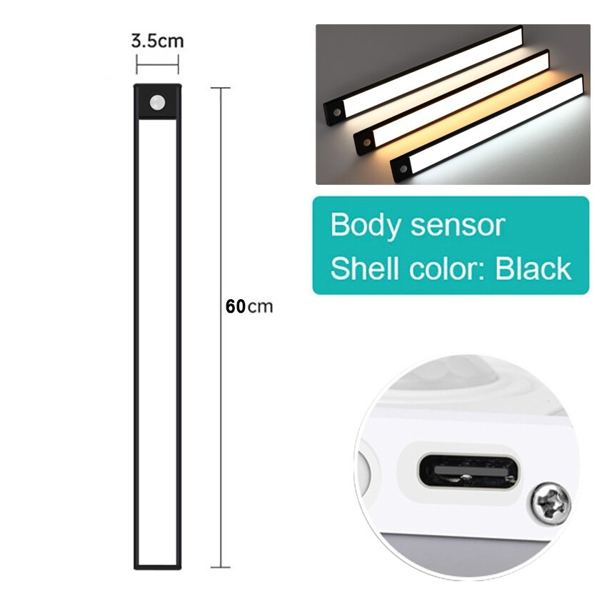 20CM 30CM 40CM 60CM Đèn LED Cảm Biến Chuyển Động Không Dây Đèn Ngủ USB Có Thể Sạc Lại Dưới Đèn Tủ Từ 3 Màu Làm Mờ Đèn Nhà Bếp Cho Phòng Tủ Quần Áo Tủ Quần Áo Phòng Ngủ Đầu Giường Ligh