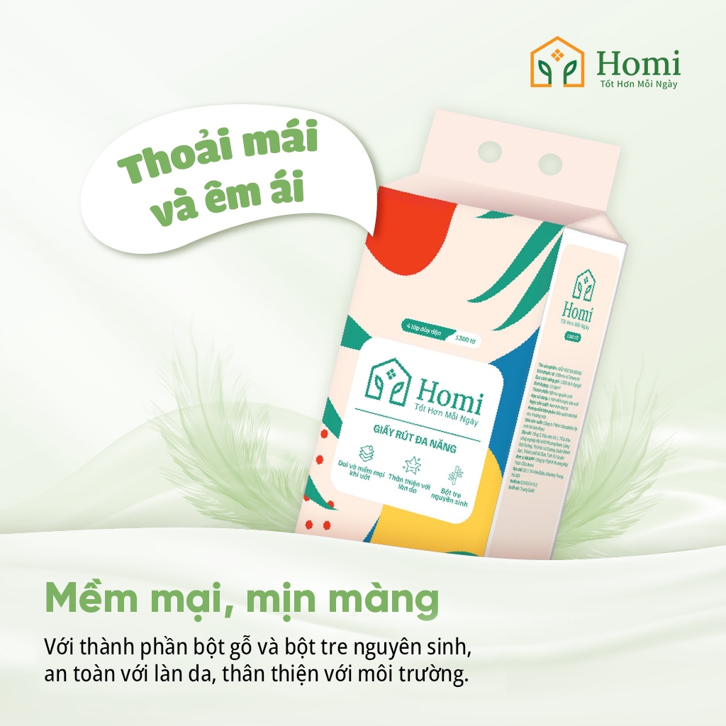 [COMBO 12 BỊCH 1000 TỜ] Thùng 12 Bịch Giấy Rút HOMI 1000 Tờ – 4 Lớp Mềm Mịn, An Toàn Cho Da, Kèm 2 Móc Treo