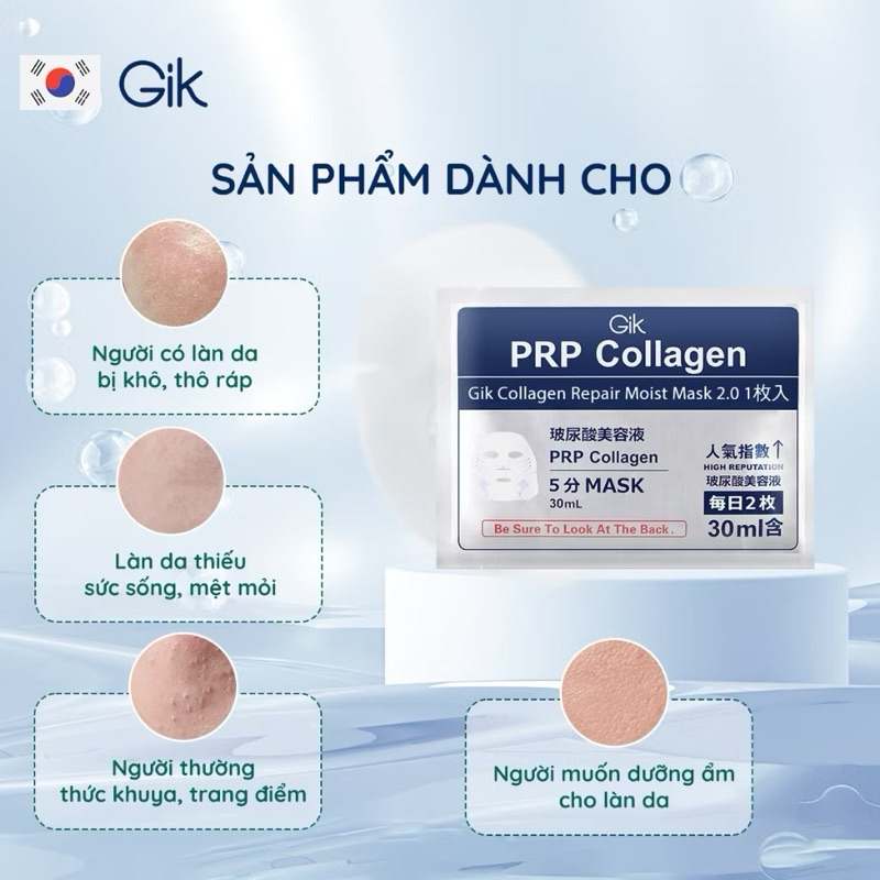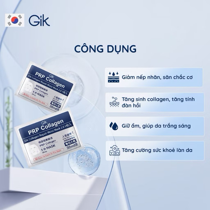 GIK Hàn Quốc 1 Miếng x30ml Mặt nạ PRP Collagen B5 B3 Giúp Cấp Ẩm,Phục Hồi Làn Da MaskSheet Skincare