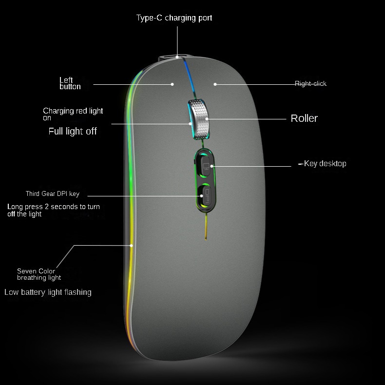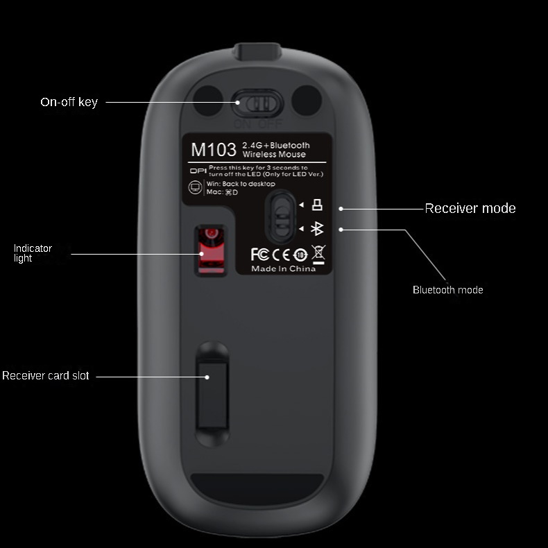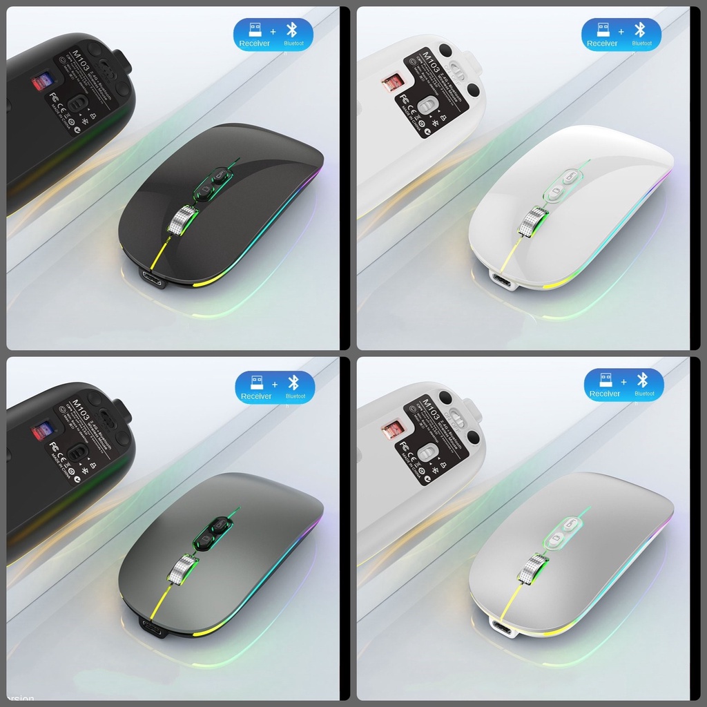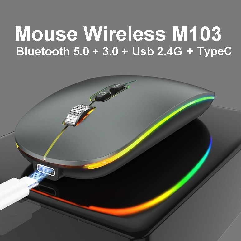 Chuột LED Không Dây M103 Bluetooth & Wireless 2.4G – Pin Sạc Type-C, Silent Click Chống Ồn cho máy tính laptop