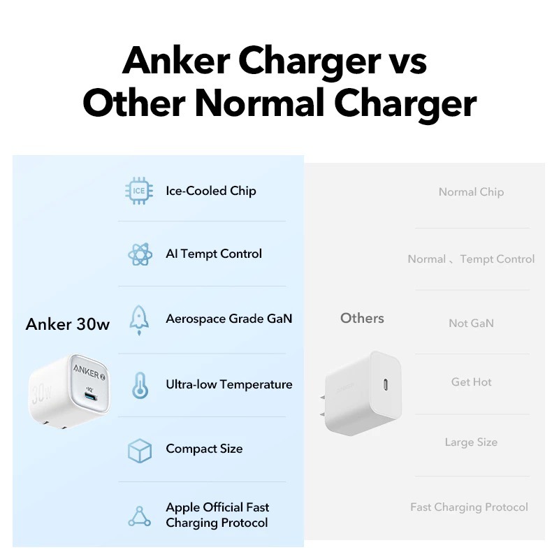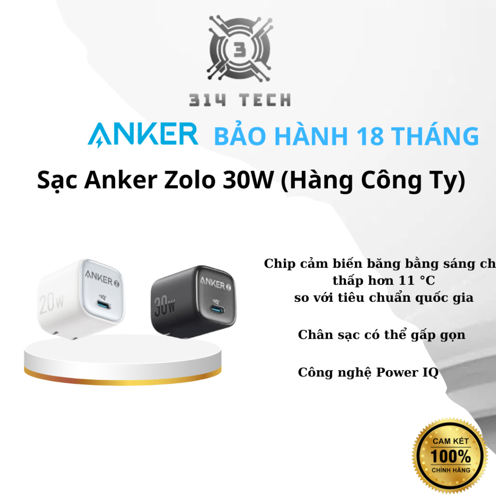 Củ sạc nhanh Anker Zolo GaN 30W | 1 cổng USB-C | Sạc nhanh Power IQ 3.0 | Chân gập gấp gọn tiện lợi