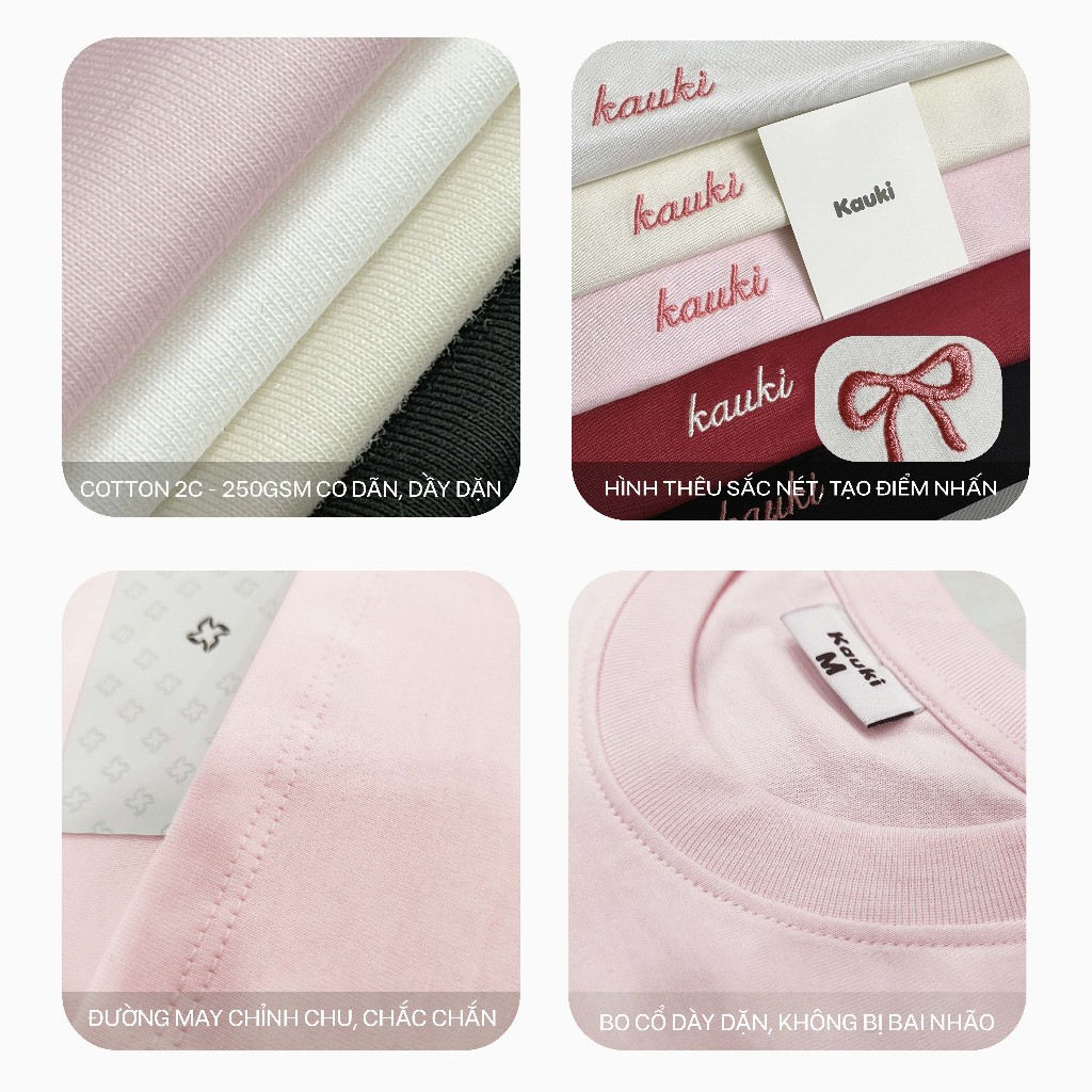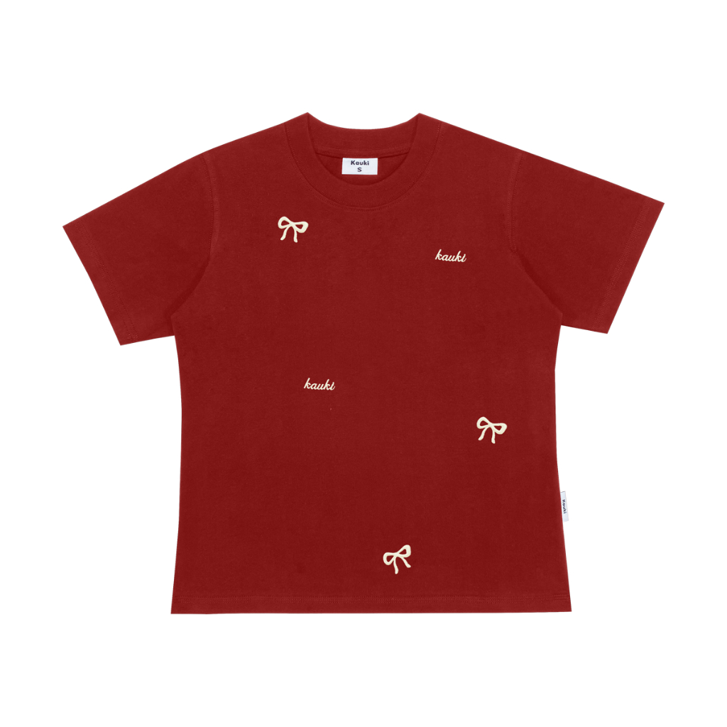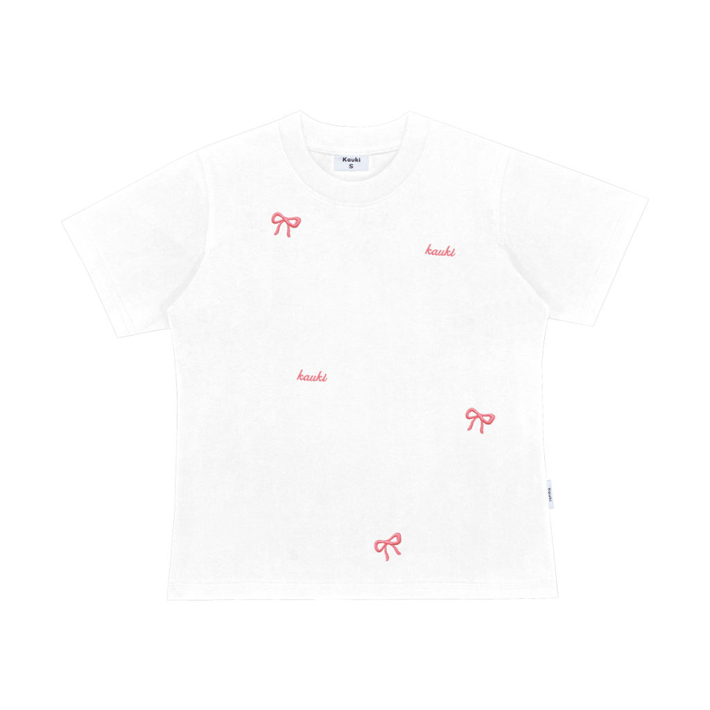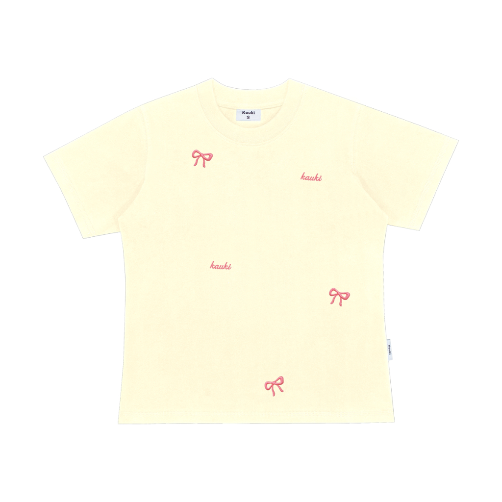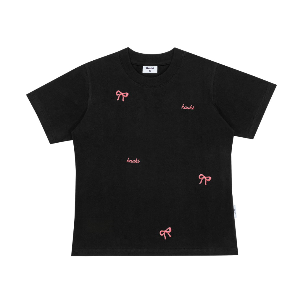 Áo baby tee Kauki thêu nơ cao cấp dày dặn form ôm nhẹ cổ tròn cotton áo thun nữ BBT5