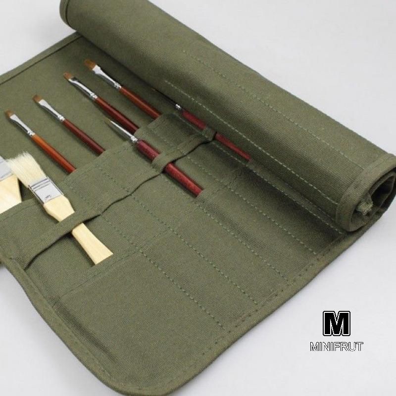 MINIFRUT] Bàn chải vẽ tranh Túi lưu trữ vải, 22 khe màu nước và cọ bầu Bàn chải thư pháp Túi lưu trữ, Túi đựng bút cuộn MỚI