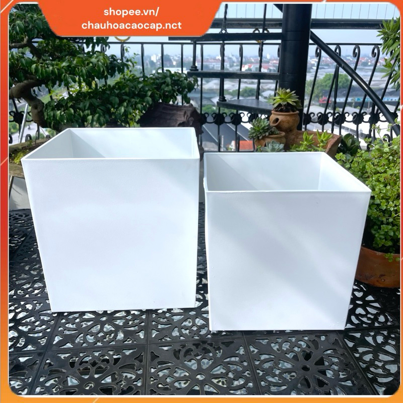Chậu nhựa vuông có bánh xe, chậu giả sứ nhập khẩu, dày dặn bền đẹp, chậu trồng cây nội thấy, cây ban công, sân vườn