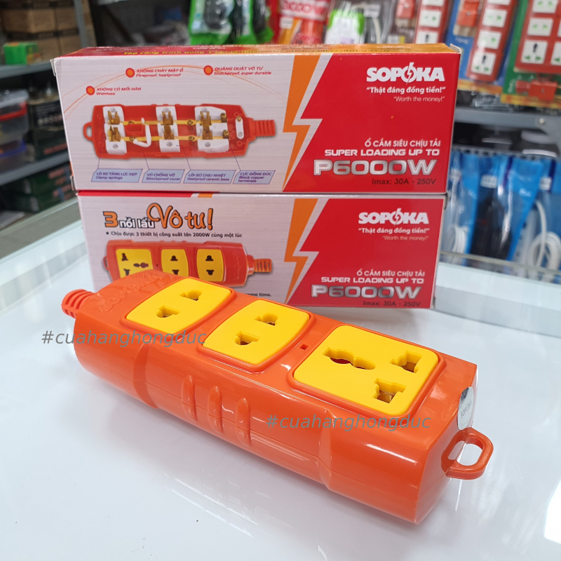 Ổ Cắm Điện SOPOKA 3 Lỗ 6000W - Lõi Sứ Siêu Chịu Tải KHÔNG KÈM DÂY (Tự Đấu Dây) | P6000W