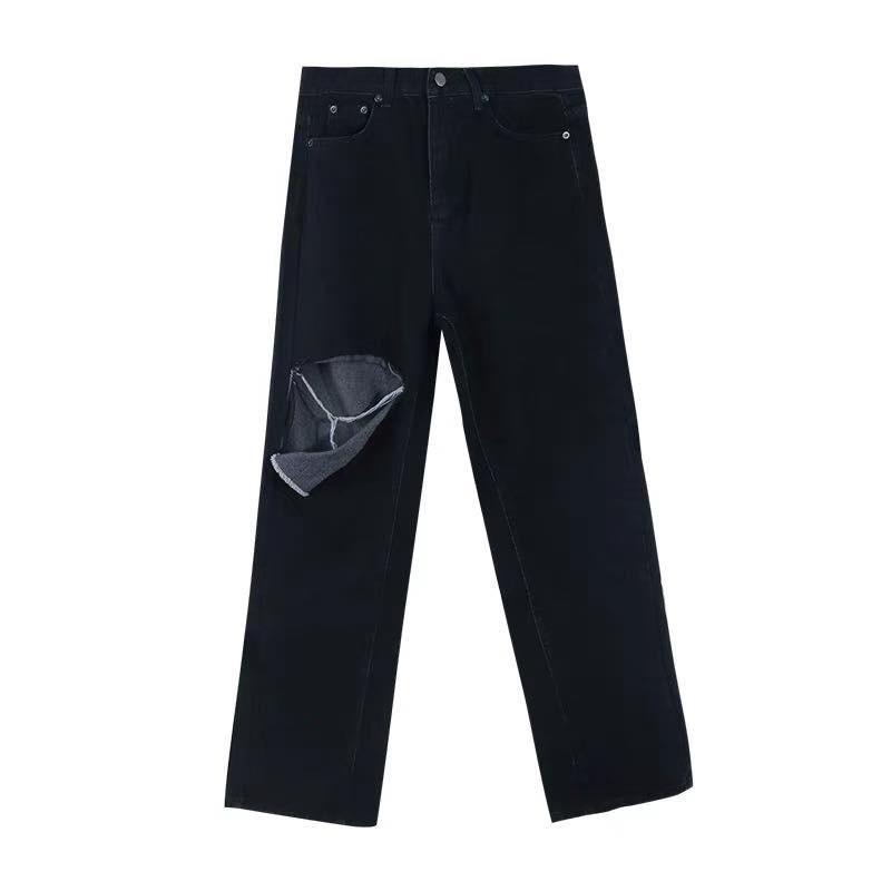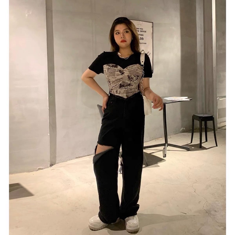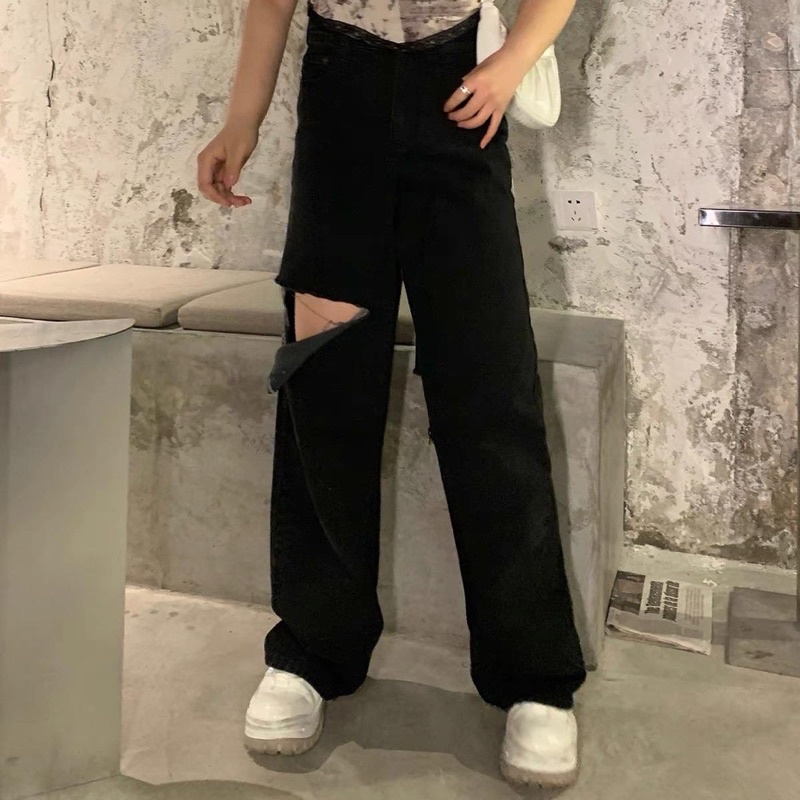 Quần jean suông bigsize rách gối vuông (Bigsize_giare)