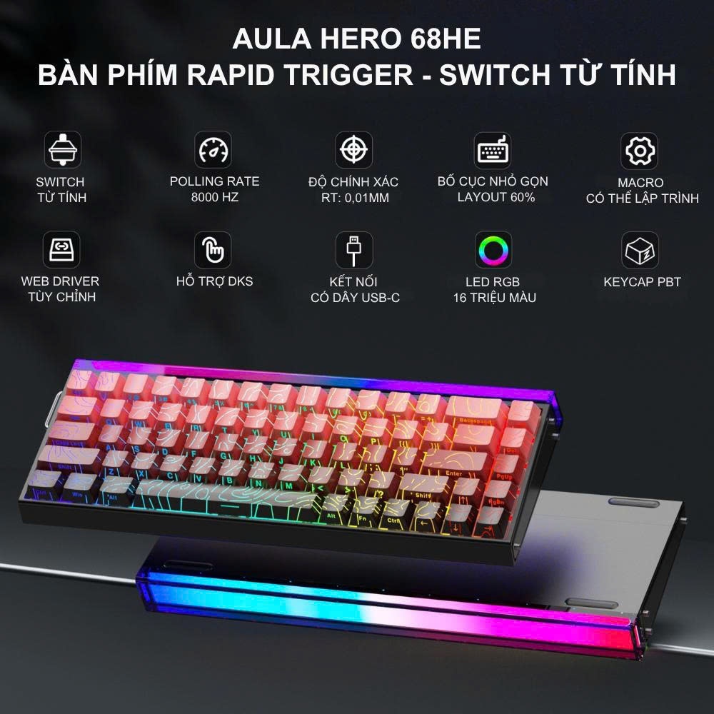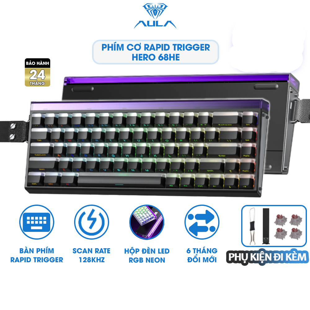 Bàn Phím Cơ Rapid Trigger AULA HERO 68HE - 84 HE Switch Nam Châm Scan Rate 128k - 8k Polling Rate
