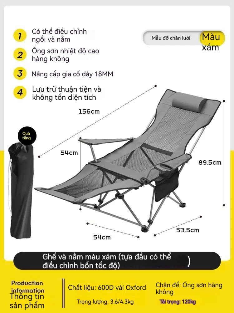 Ghế Xếp Thư Giãn 4 NẤC gấp gọn Di Động ngoài trời Cắm Trại, Ghế Camping gấp gọn nằm nghỉ ngơi