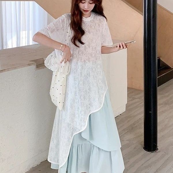 Set Váy Ren Nữ Big Size Mùa Hè, Thiết Kế Không Đều Nữ Tính
