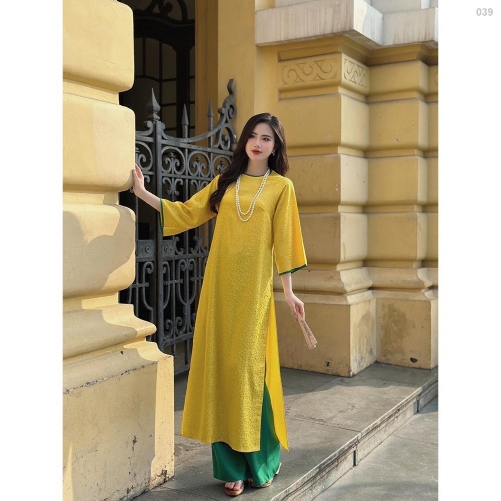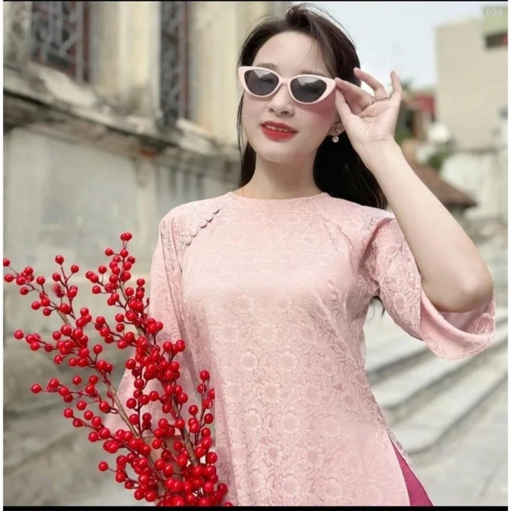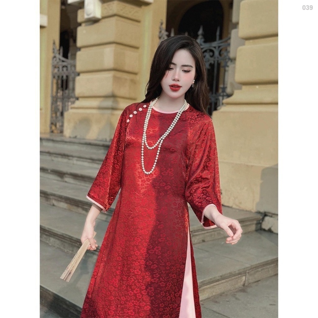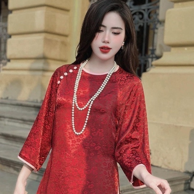 Áo Dài Dáng Xuông Gấm Tằm Thọ Cổ Tròn Phối Tay Lỡ Loe, Áo Dài Tết 2026_ ken_adam_store_1997