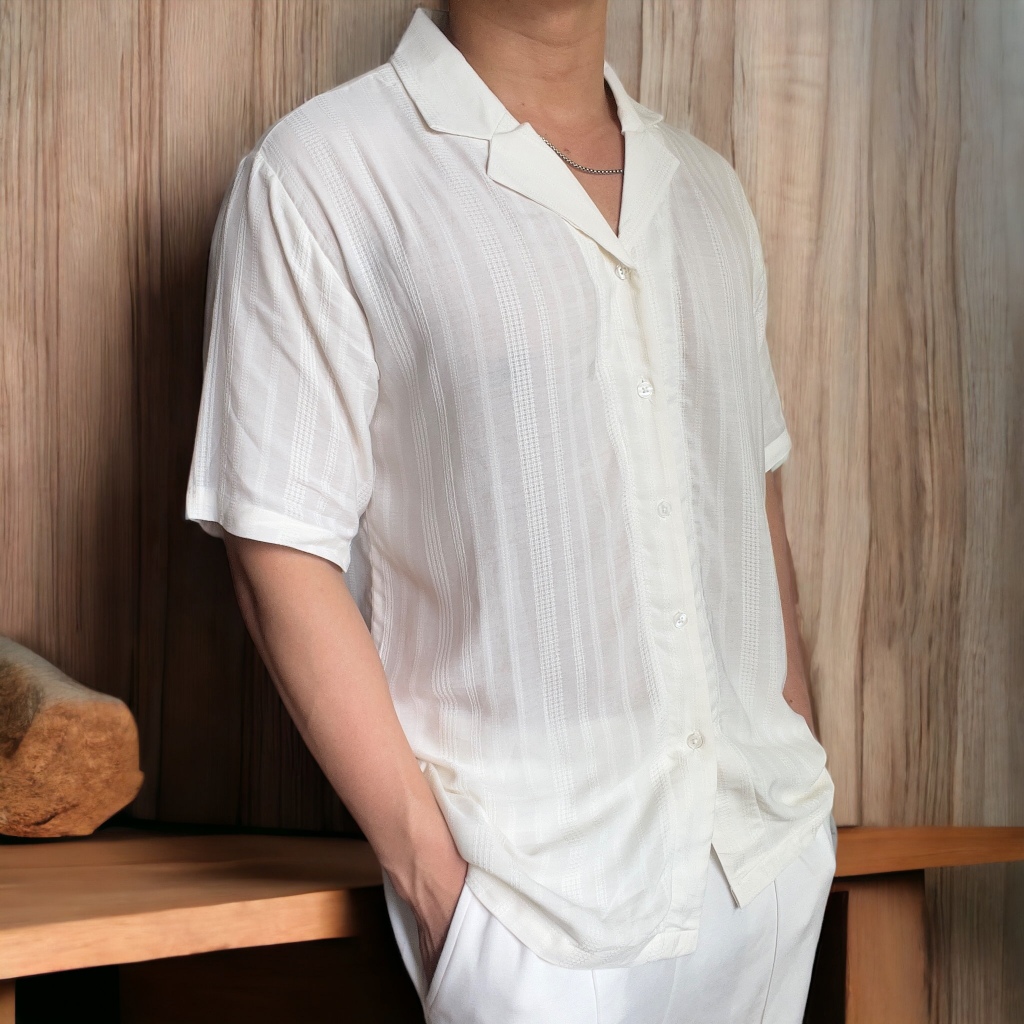 Áo sơ mi nam SolBox, áo sơ mi cuban đi biển, vải cotton mỏng nhẹ, lãng tử, vintage