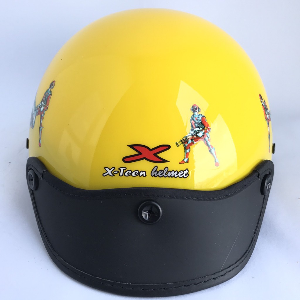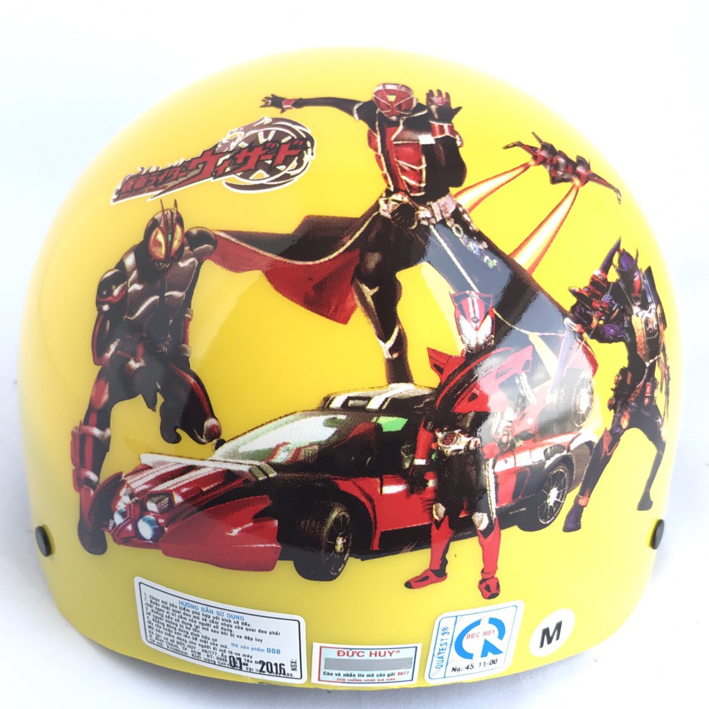 Nón bảo hiểm trẻ em cao cấp dành cho bé từ 3 đến 5 tuổi - Mỏ da Xteen - Vàng siêu nhân (có nhiều tem)