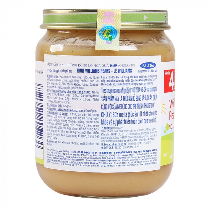 Thức ăn dinh dưỡng đóng lọ HiPP 125g lê Williams