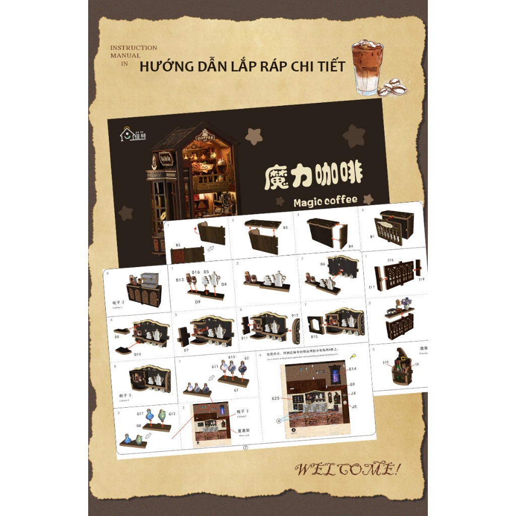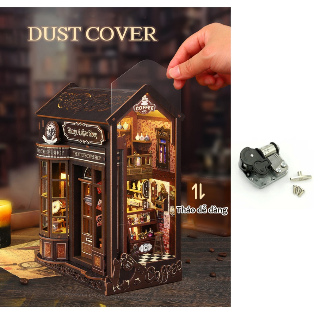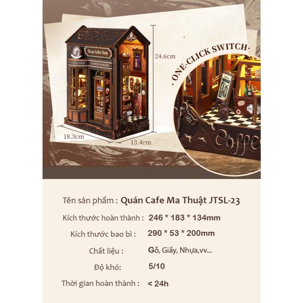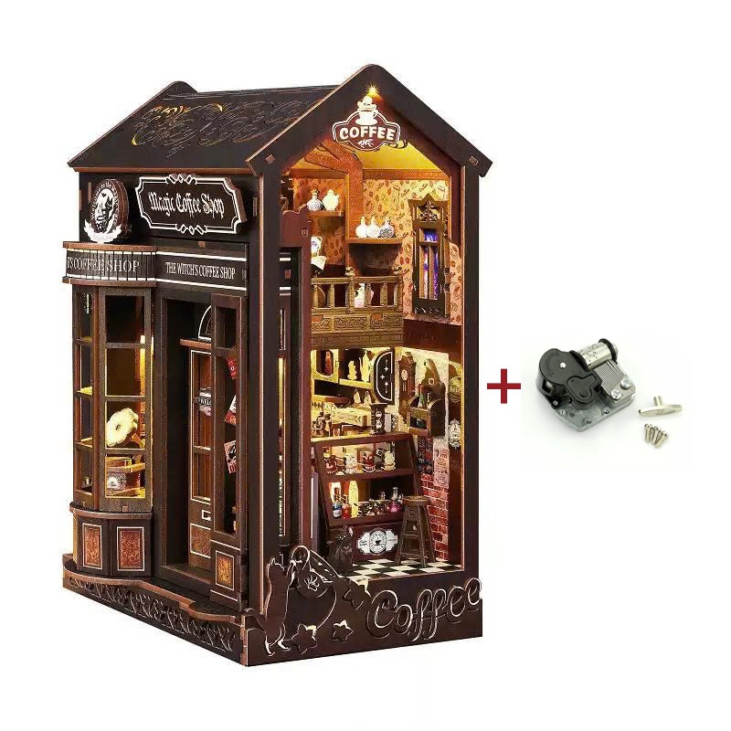 Mô Hình Book nook Lắp Ráp Gỗ phát nhạc Quán Cafe Ma Thuật thiết kế cánh mở JTSL-23– DIY Mini House Có Đèn LED Trang Trí
