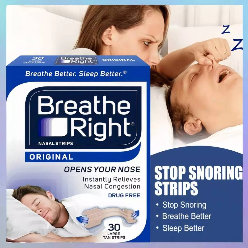 Miếng dán chống ngáy thông mũi Breathe Right - Miếng dán mũi giảm nghẹt mũi, giảm ngáy (gáy) khi ngủ Breathe Right