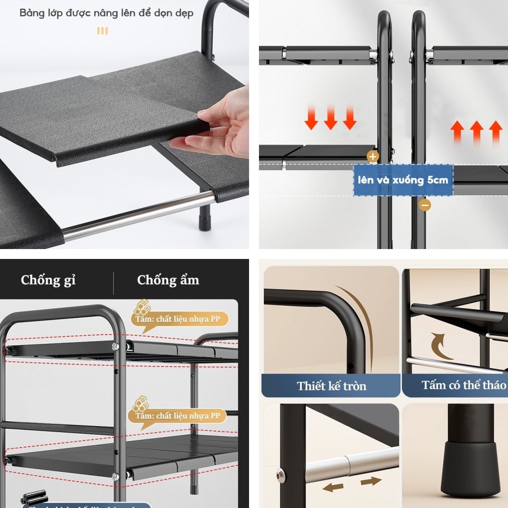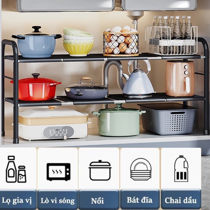 Kệ gầm Bếp bằng Thép, Kệ để đồ nhà Bếp 2 tầng đa năng gọn gàng ngăn nắp,Sơn tĩnh điện-Kệ để xoong Nồi, Kệ gầm bồn rửa
