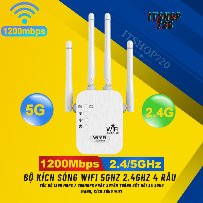 Bộ kích sóng wifi 5Ghz 2.4Ghz 4 râu tốc độ 1200 mbps / 300mbps phát xuyên tường kết nối xa sóng mạnh, Kích sóng wifi