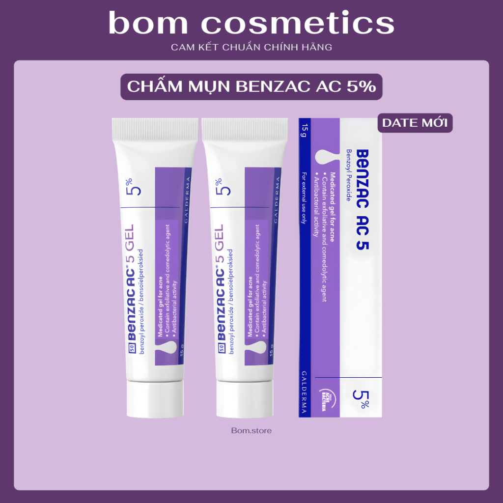 Gel chấm mụn Benzac AC 5% 2.5% Benzoyl Peroxide gel chấm mụn viêm mụn sưng đỏ