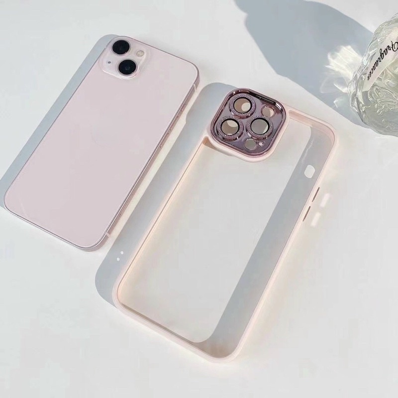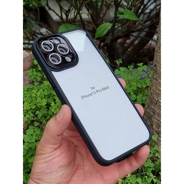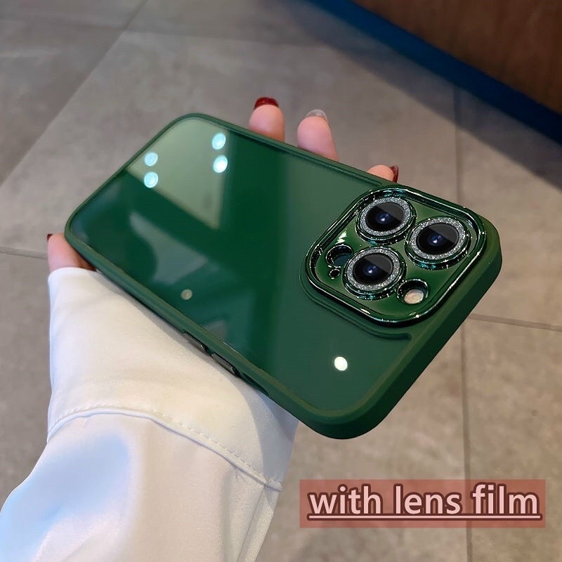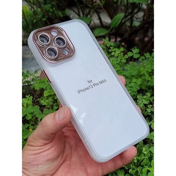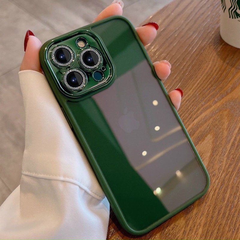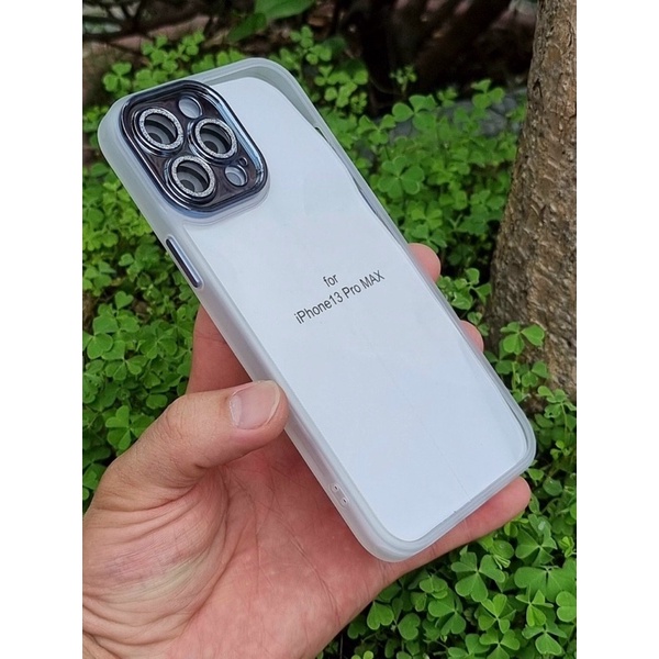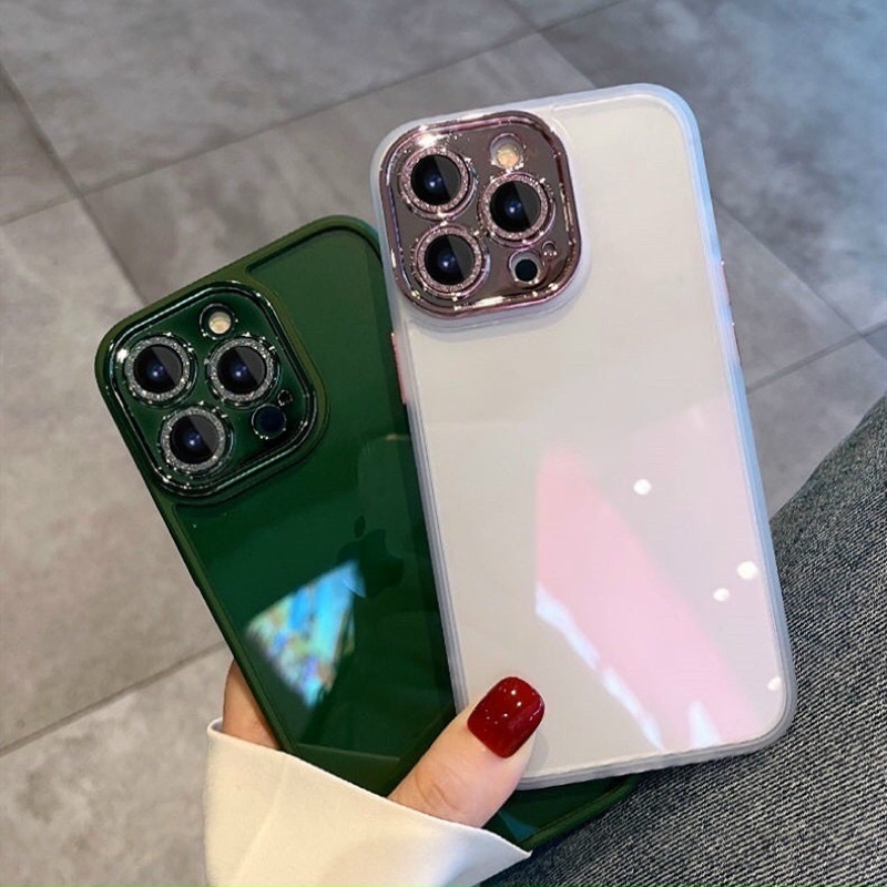 Ốp lưng kính trong viền màu bảo vệ camera gắn đá nhũ cho iPhone 13, 13 Pro, 13 Pro Max siêu đẹp sang trọng