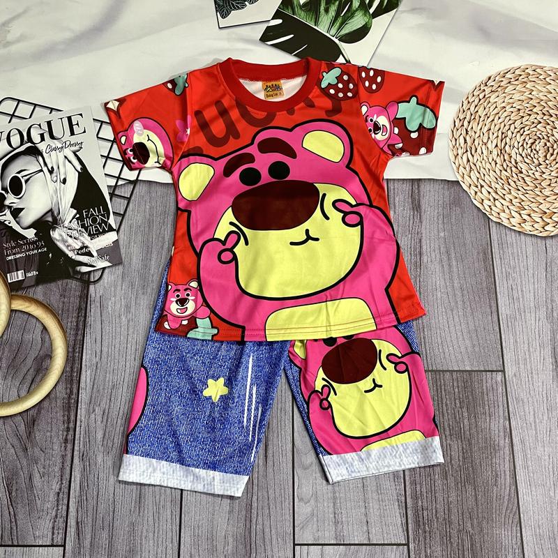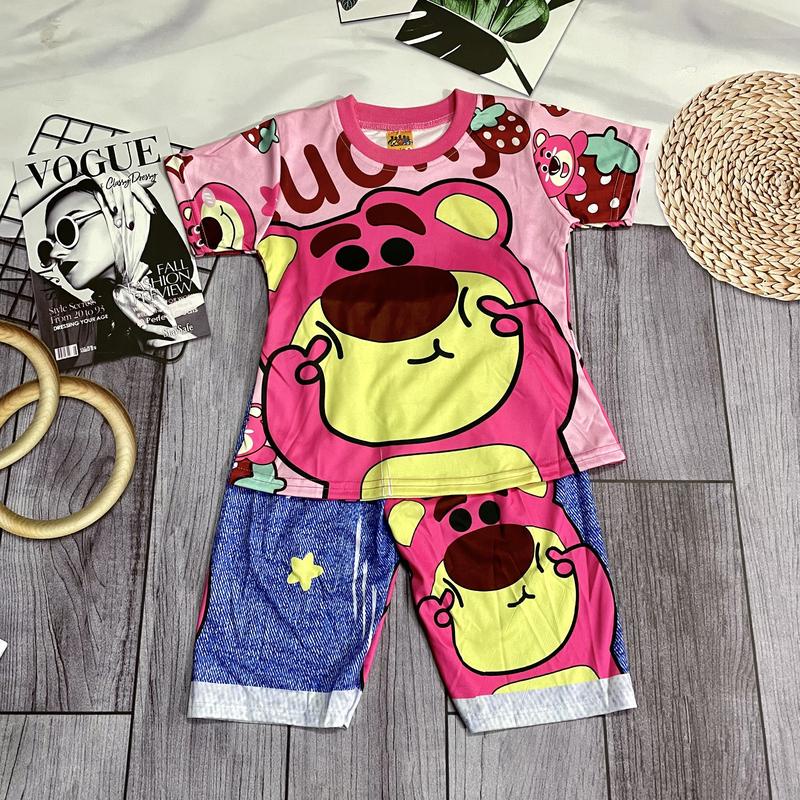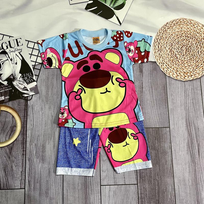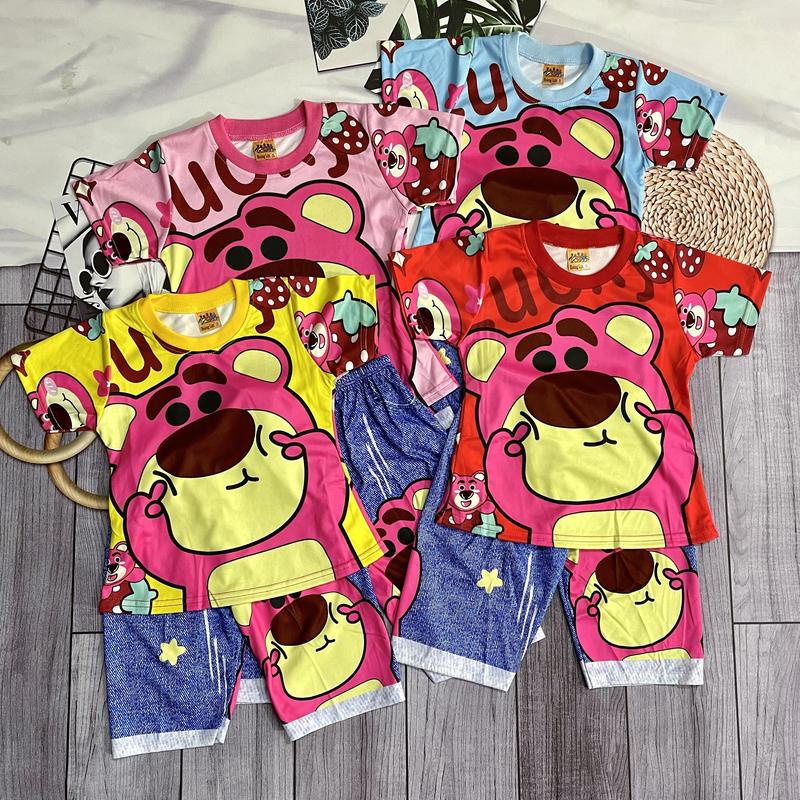 [6-10kg] Đồ bộ 3D gấu dâu làm mặt duyên bé gái nhiều màu mặc thường ở nhà cho bé gái