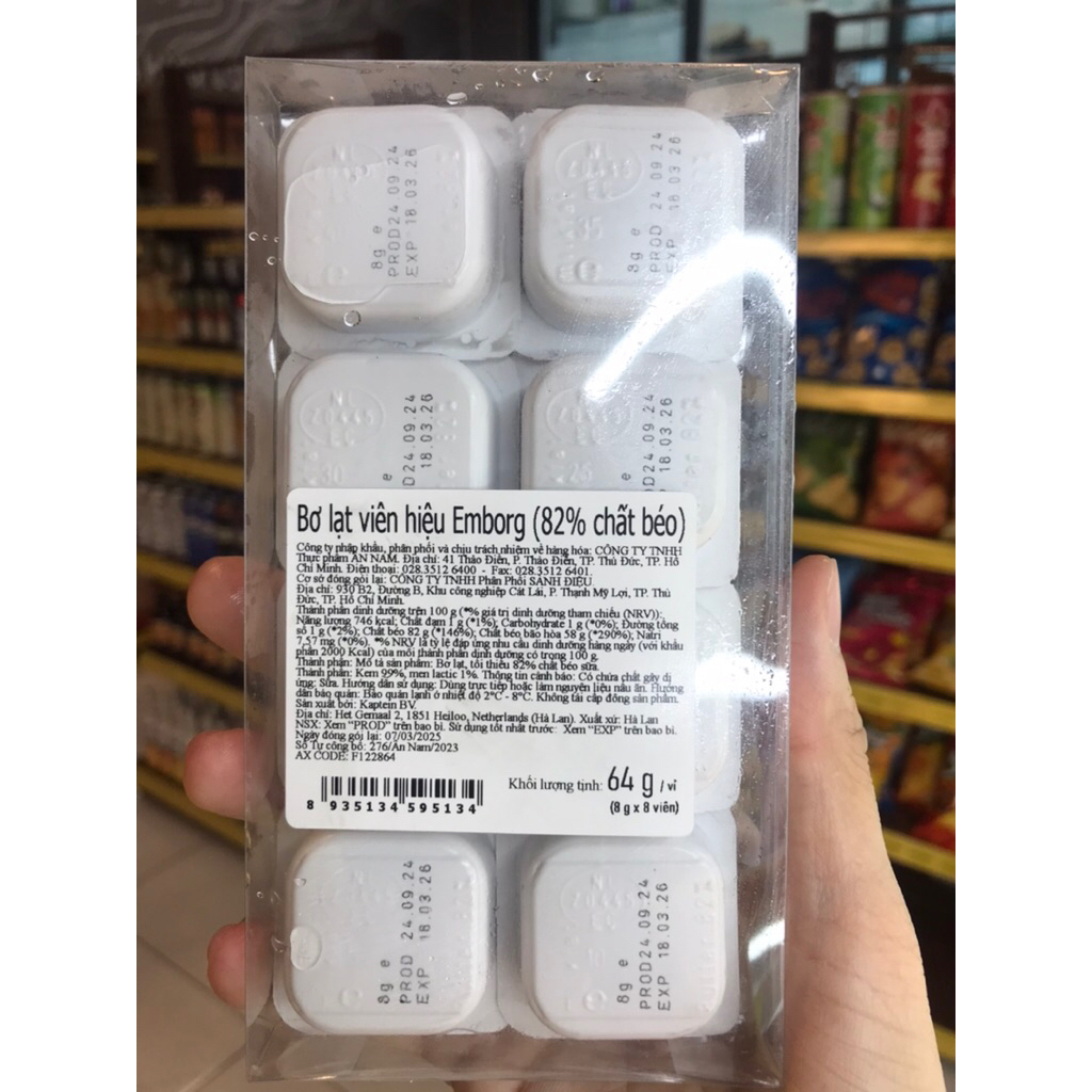 Bơ lạt viên Emborg 82% chất béo vỉ 64 g (8 x 8g)