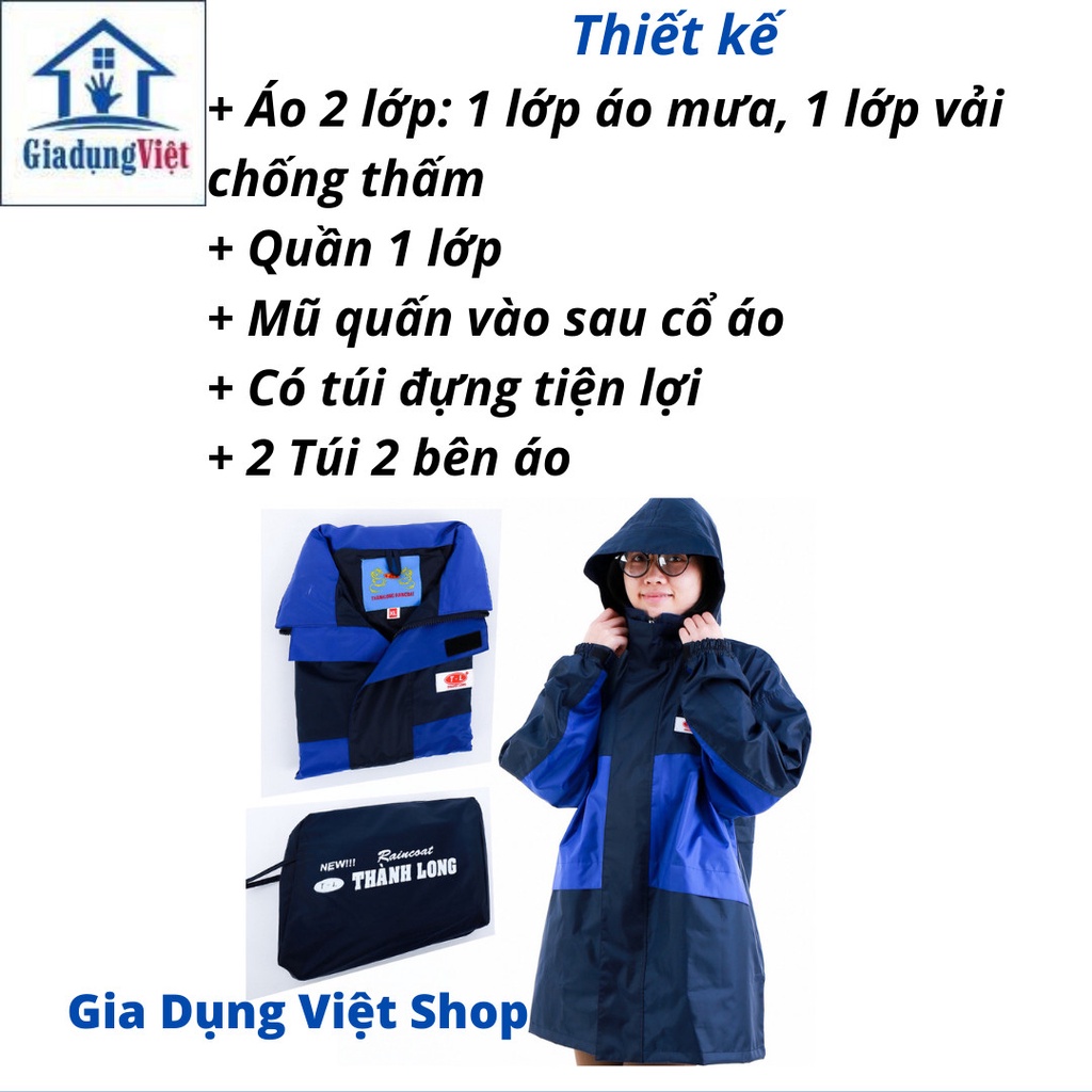 BỘ ÁO MƯA THÀNH LONG VẢI DÙ 2 LỚP CAO CẤP