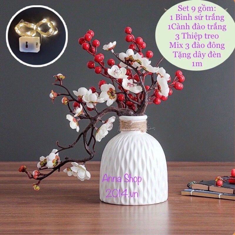Bình Sứ & Hoa Đào BonSai Mix Đào Đông Đỏ Trang Trí Tết, Nhà, Cửa Hàng, Công Ty chào Xuân 2026 (sẵn kho)🌻