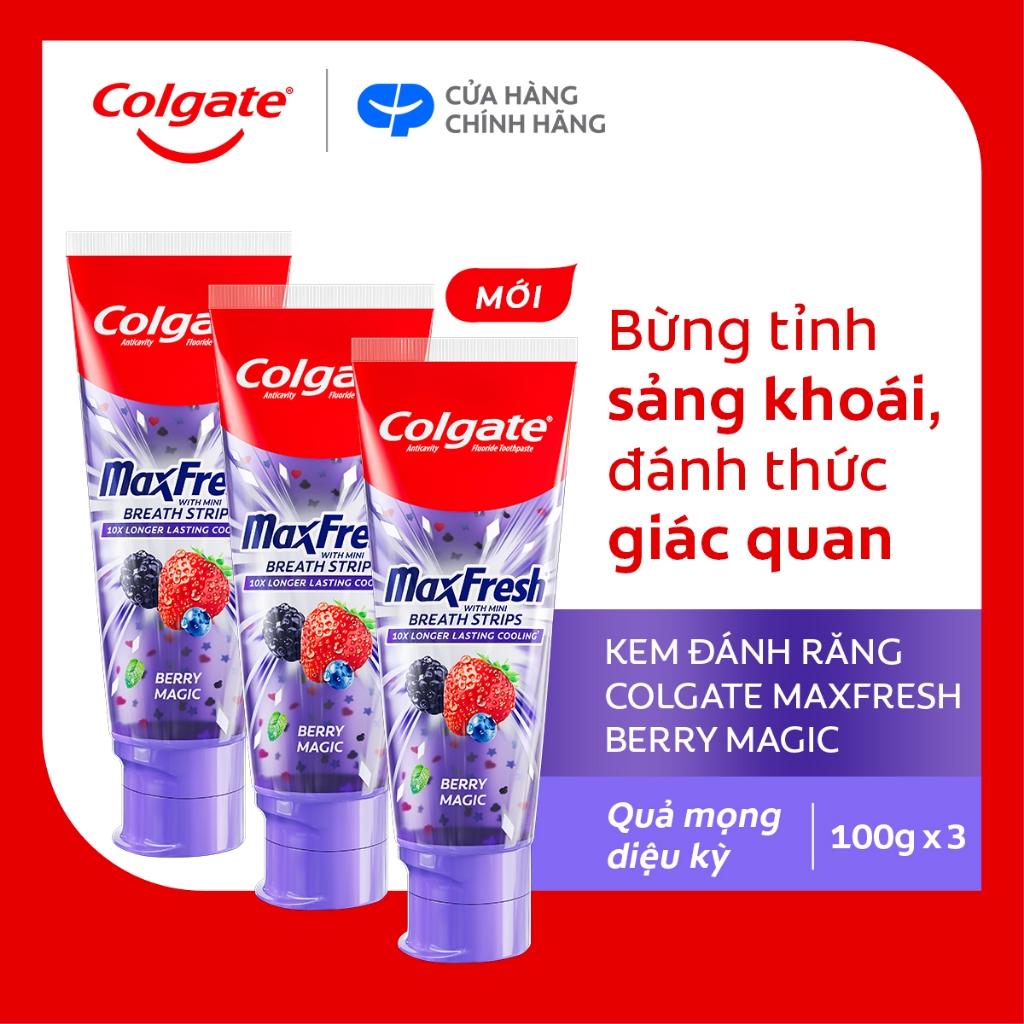 [LS] Bộ 3 Kem đánh răng Colgate MaxFresh Hương nhiệt đới, tinh thể cầu vồng the mát 100g/ tuýp