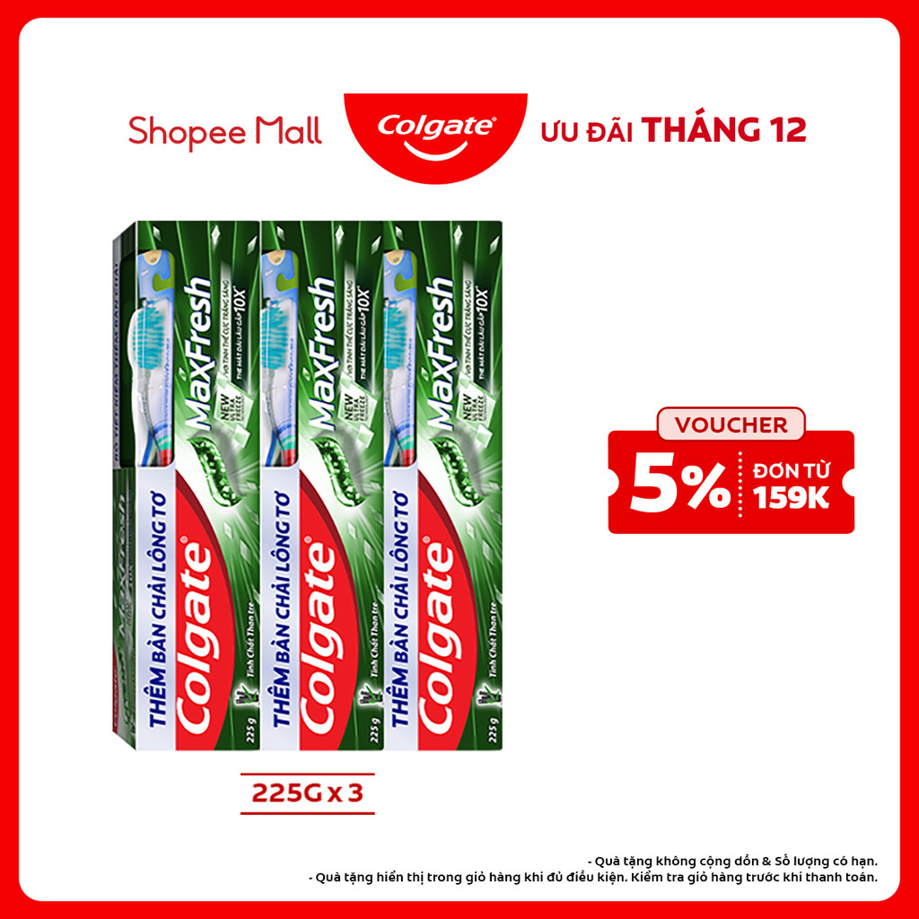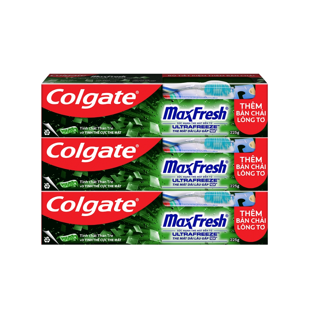 Bộ 3 Kem đánh răng Colgate Maxfresh Bamboo Charcoal 225g/tuýp tặng bàn chải