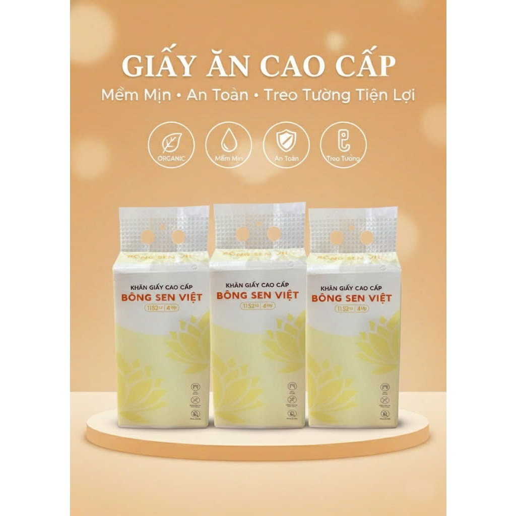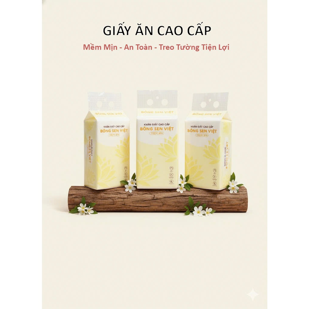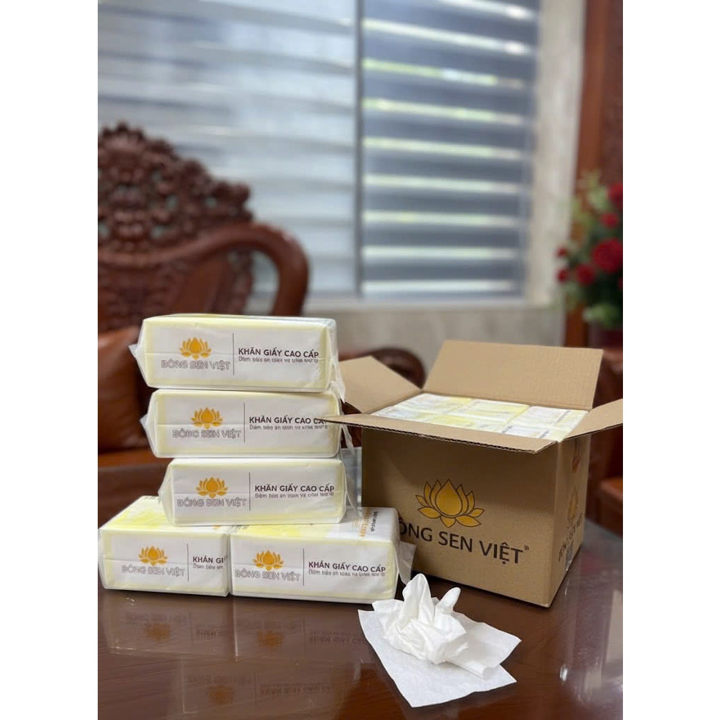Thùng 10 bịch Khăn Giấy Rút Treo Tường Bông Sen Việt 1252 Tờ, Tặng Kèm 4 Móc Treo Tường