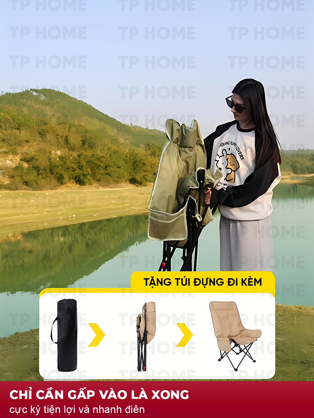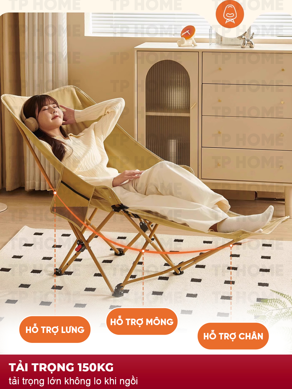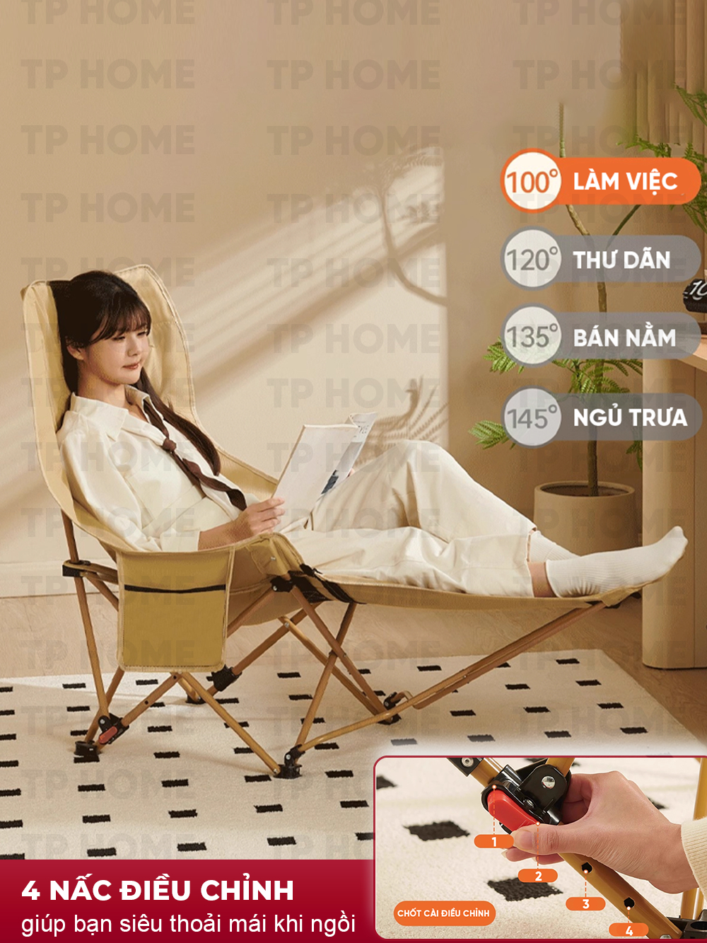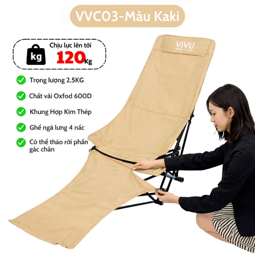 Ghế gấp gọn 4 Nấc Vivucamping Chịu tải 150kg – Đa Năng, Tiện Lợi, Có gác chân, Thư Giãn Mọi Lúc