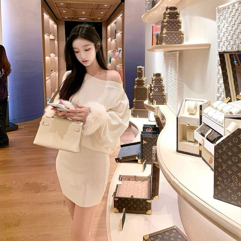 Váy Len Body Tay Lông Phong Cách Hàn Quốc Tôn Dáng Nữ Tính