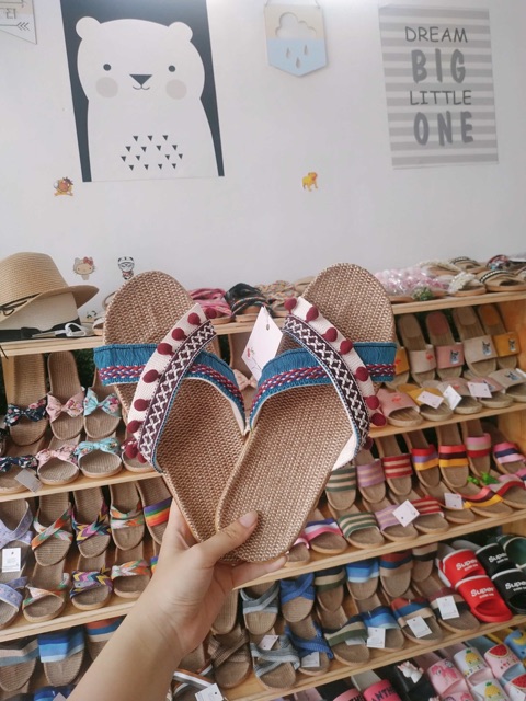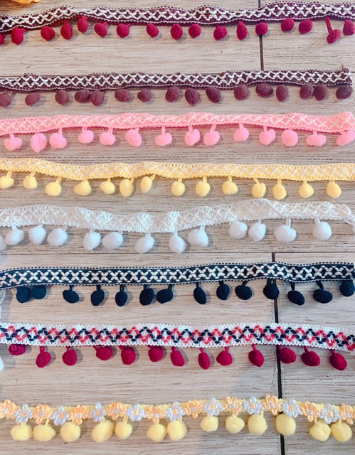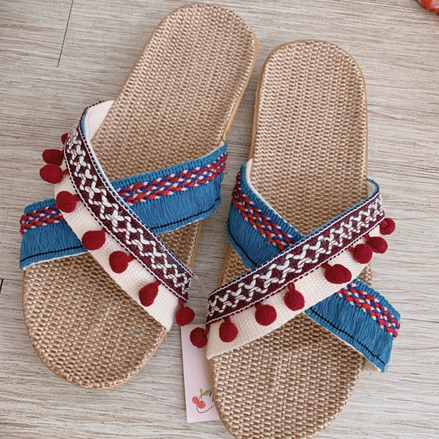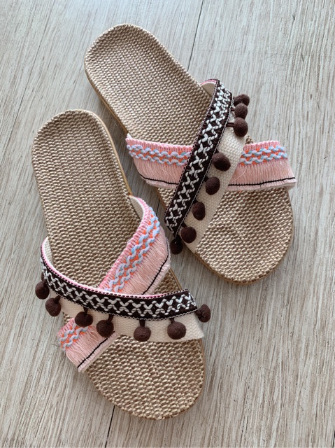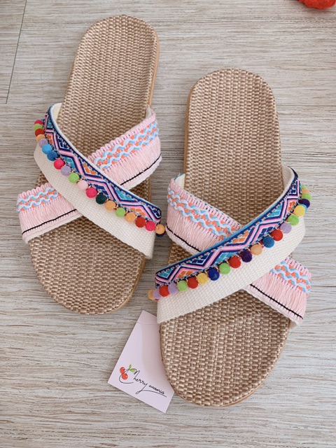 Buffet dép : Dép quai chéo trắng mix dây pom pom