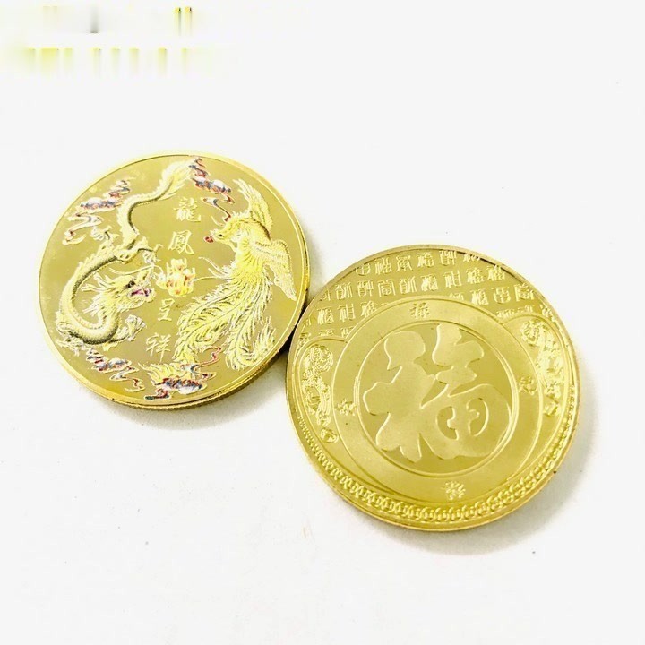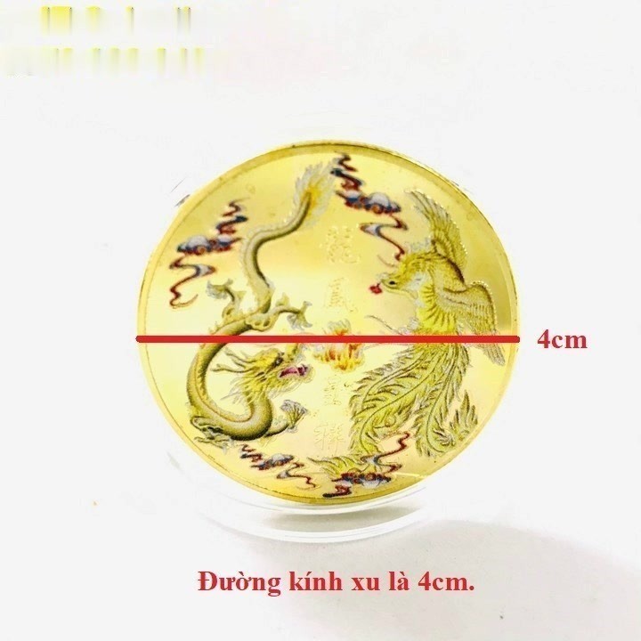 ✨Phong thủy✨Xu Long Phụng In Màu Vàng, trang trí bàn sách, bàn làm việc- SP005270
