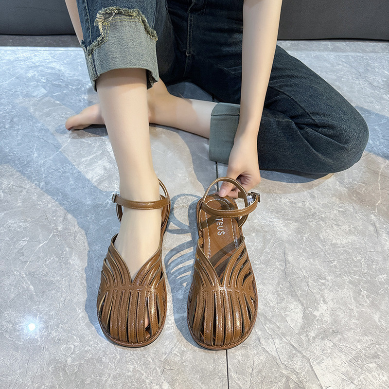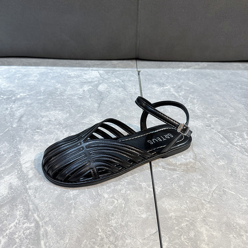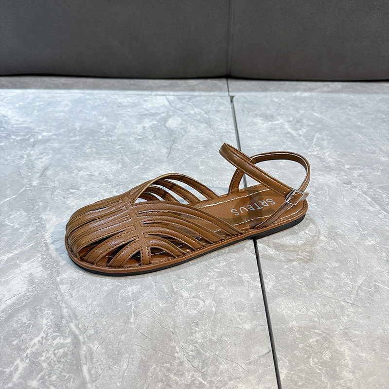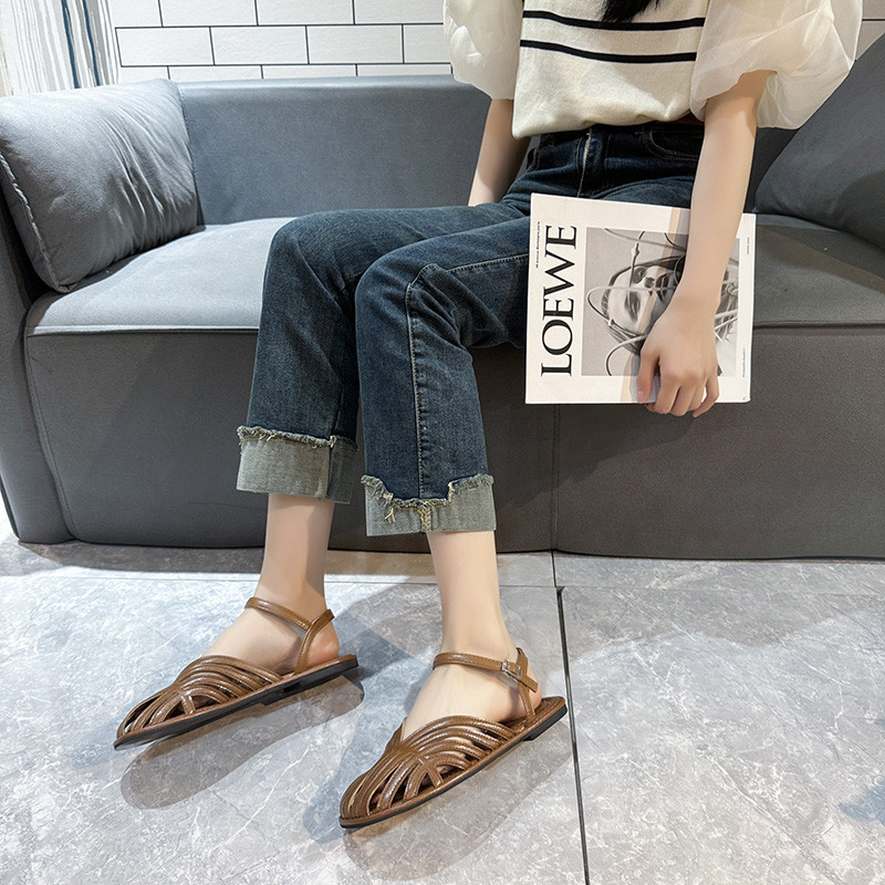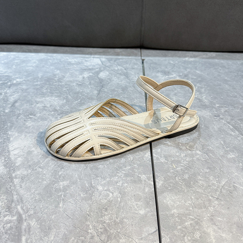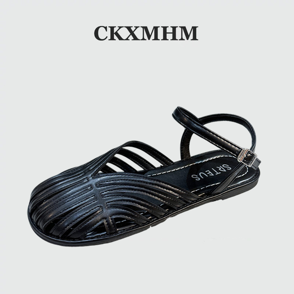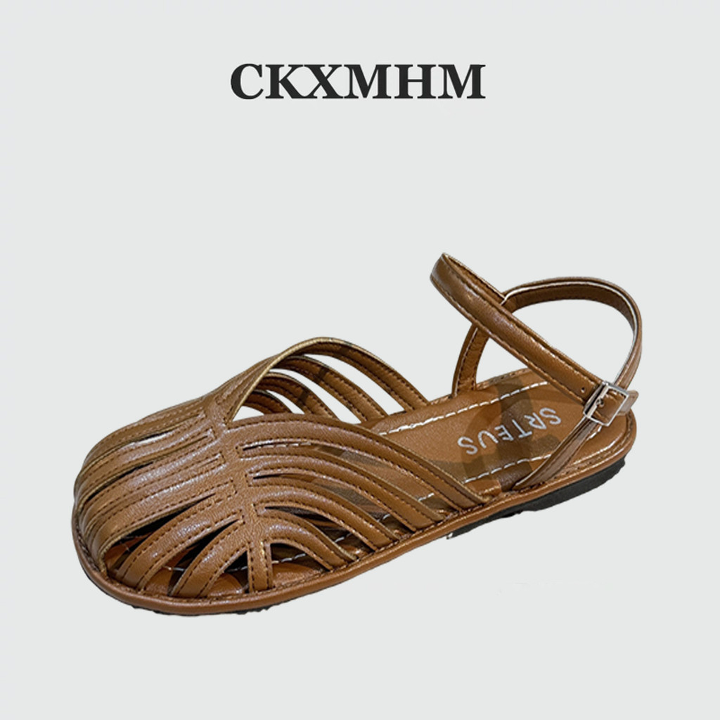 CKXMHM 2024 Nữ Khóa Da Sandal Flat Sandal Sandal Khỏe Mạnh