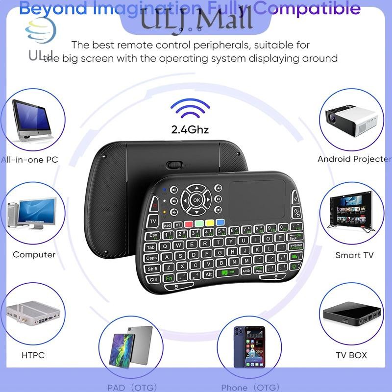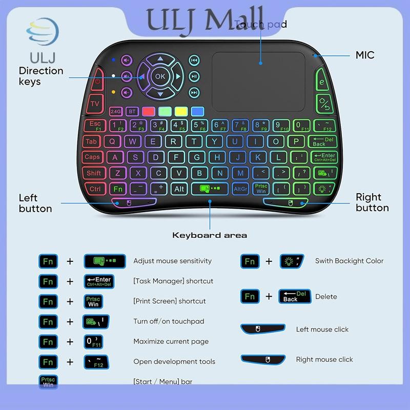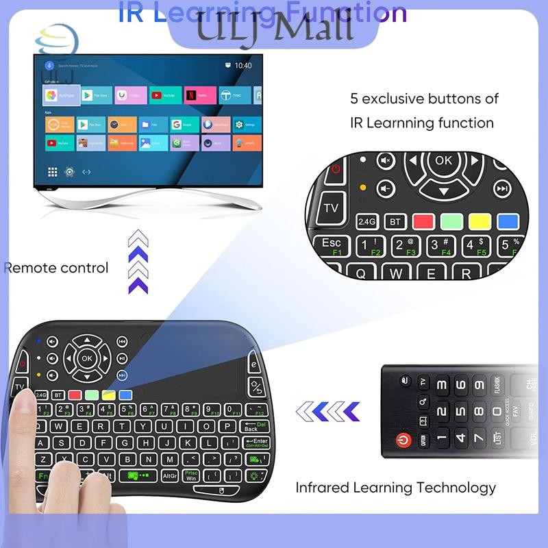 Bàn phím không dây ULJ M9 BT & 2.4G 7 đèn nền Type-C Voice IR Learning Air Mouse Remote Touchpad cho Android TV Box PC.