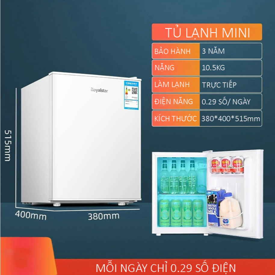 Tủ lạnh mini 110L Tủ lạnh 2 cánh làm đá lạnh cực nhanh Siêu nhỏ gọn tiết kiệm điện 0.33kw/24h