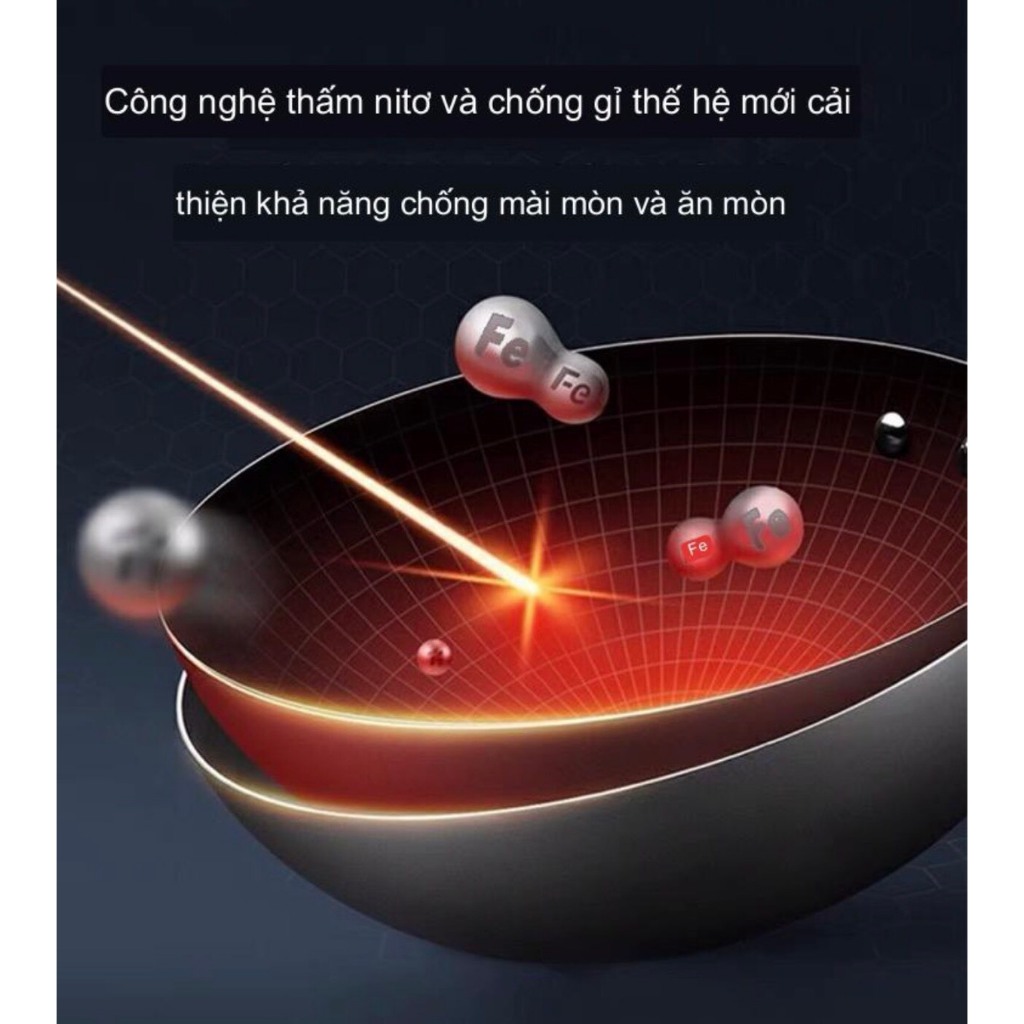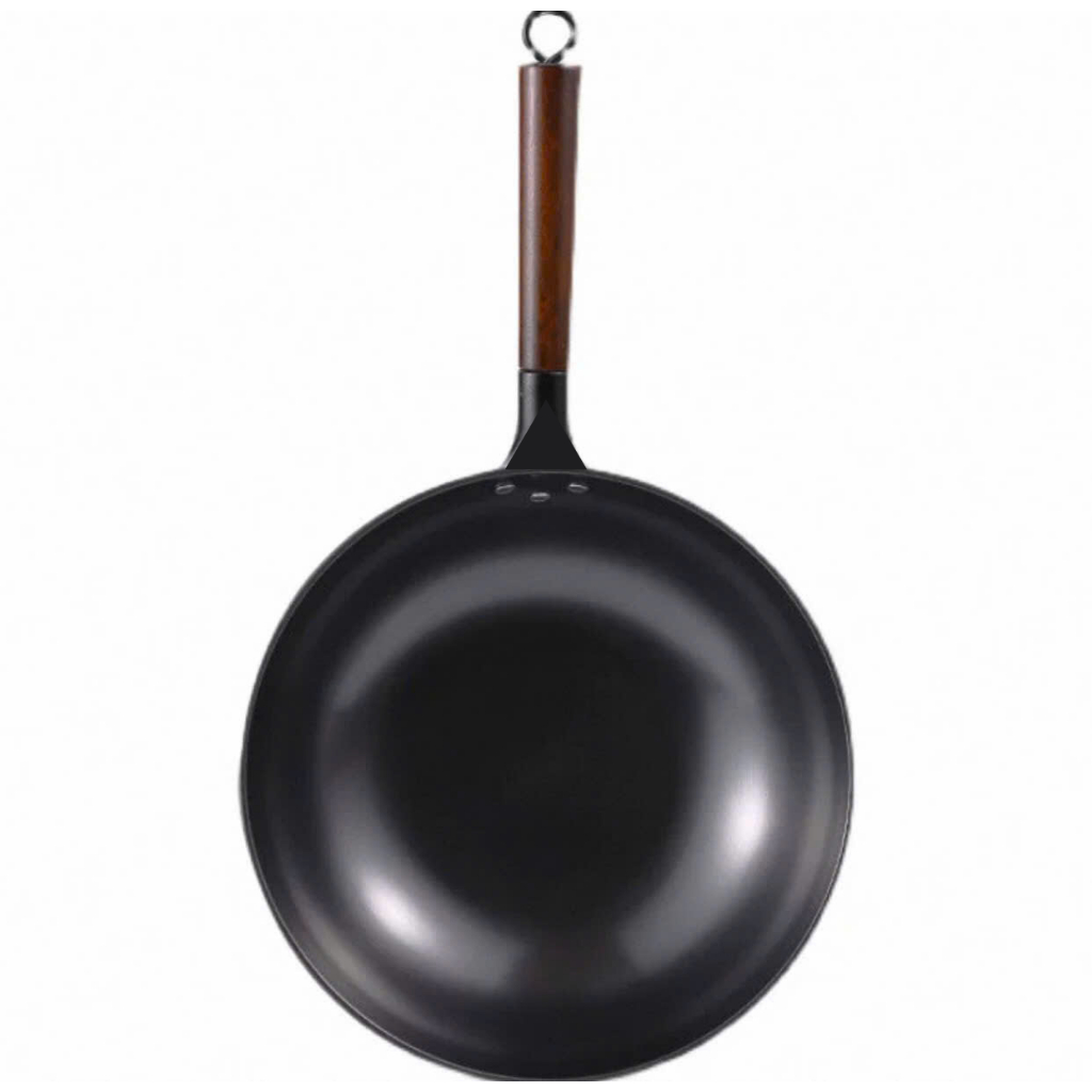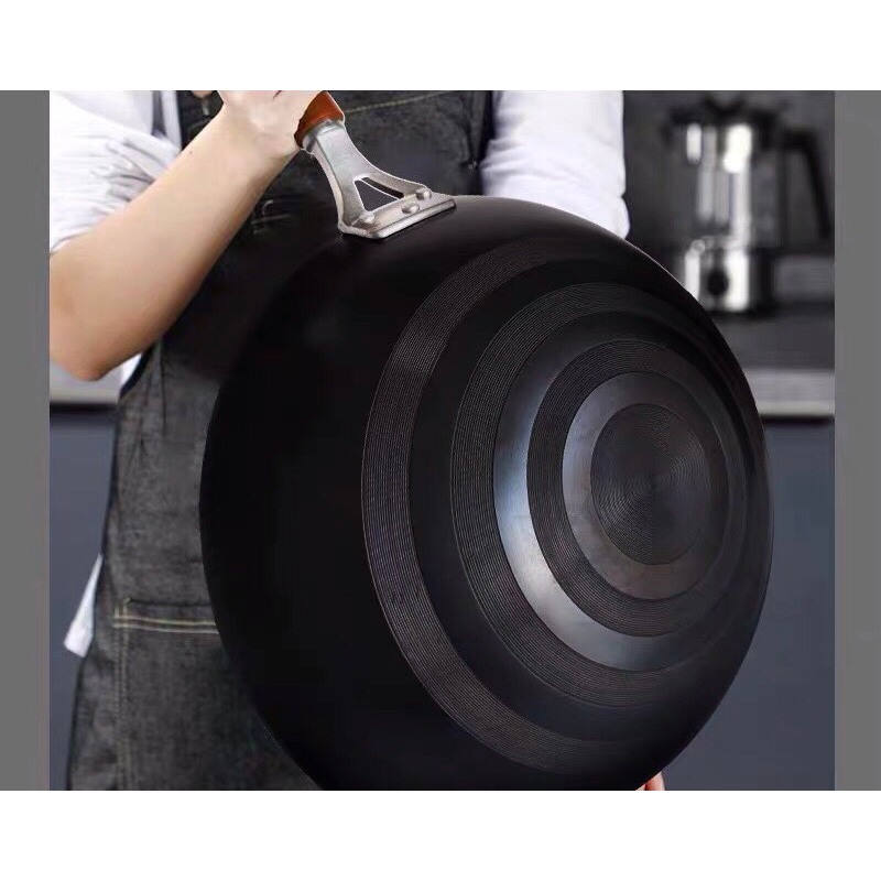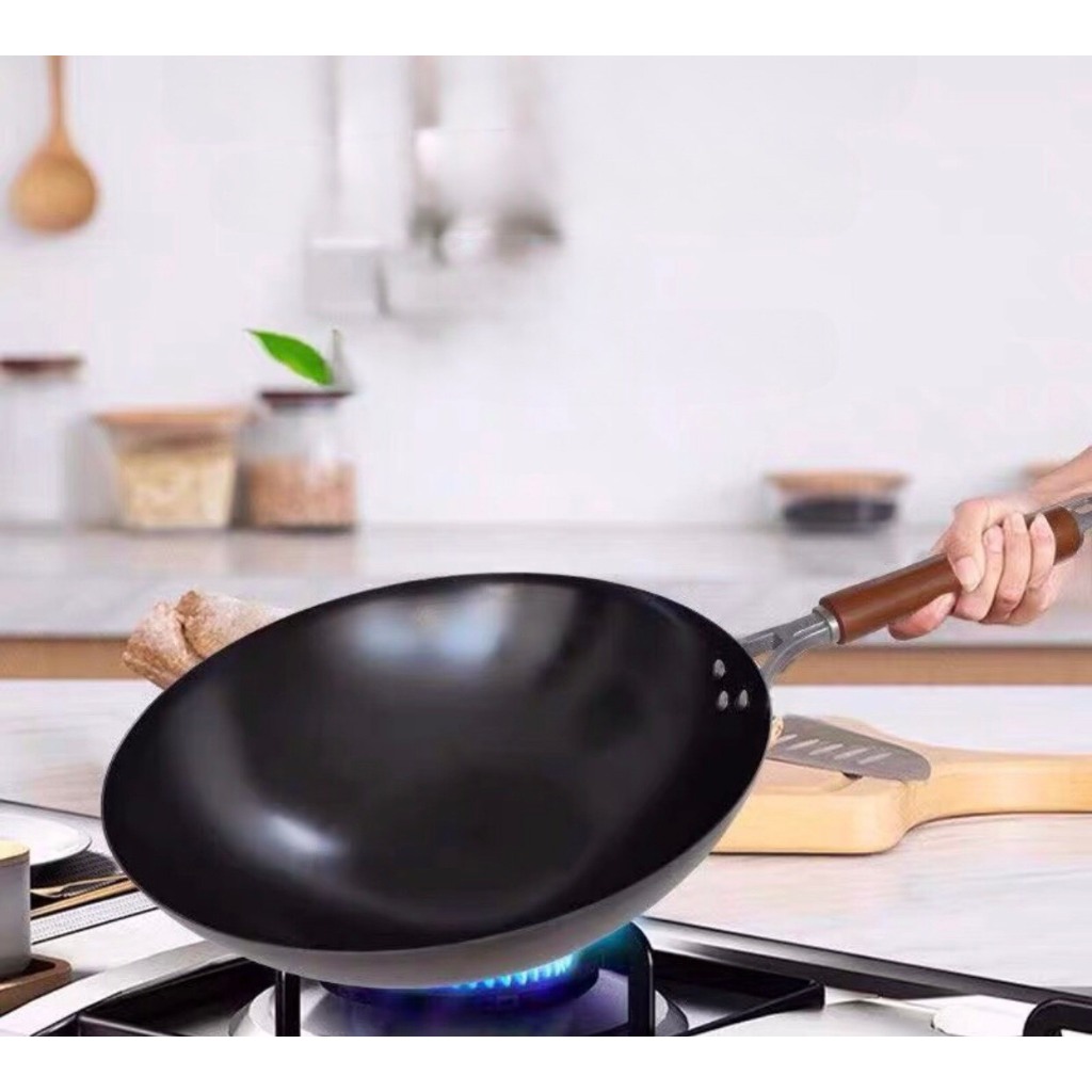 Chảo thép đen tay cầm nhôm + gỗ chống nóng đã Tôi Nhiệt Sẵn, Chảo chuyên dùng trong quán ăn , nhà hàng