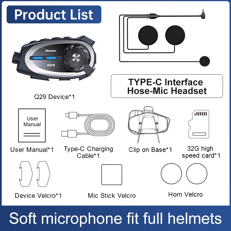 Tai nghe Bluetooth xe máy Intercom Giao tiếp không dây 500m, Bộ rảnh tay mũ bảo hiểm, Chế độ lái kép, Khử tiếng ồn HD, Hỗ trợ nhạc / máy ảnh, Phụ kiện xe đạp chống nước