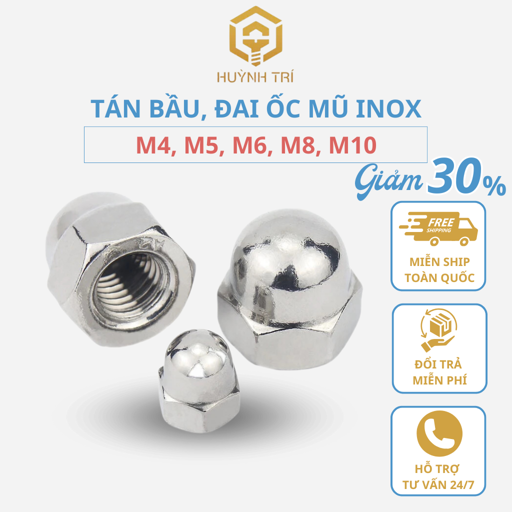 Tán bầu, Đai ốc mũ, đai ốc chỏm cầu INOX 304 M4 M5 M6 M8 M10 10Con - bulonghuynhtri