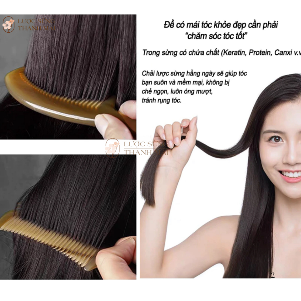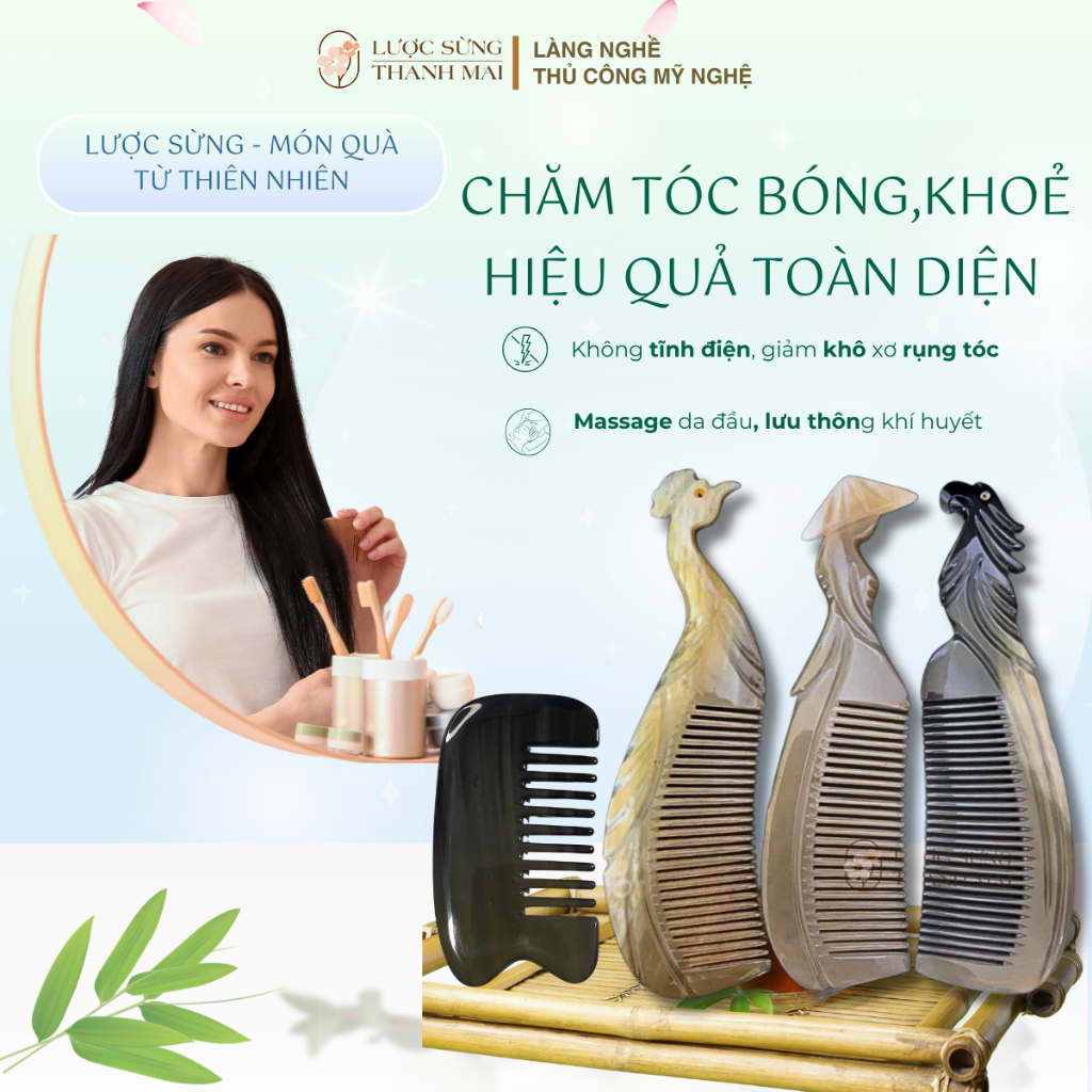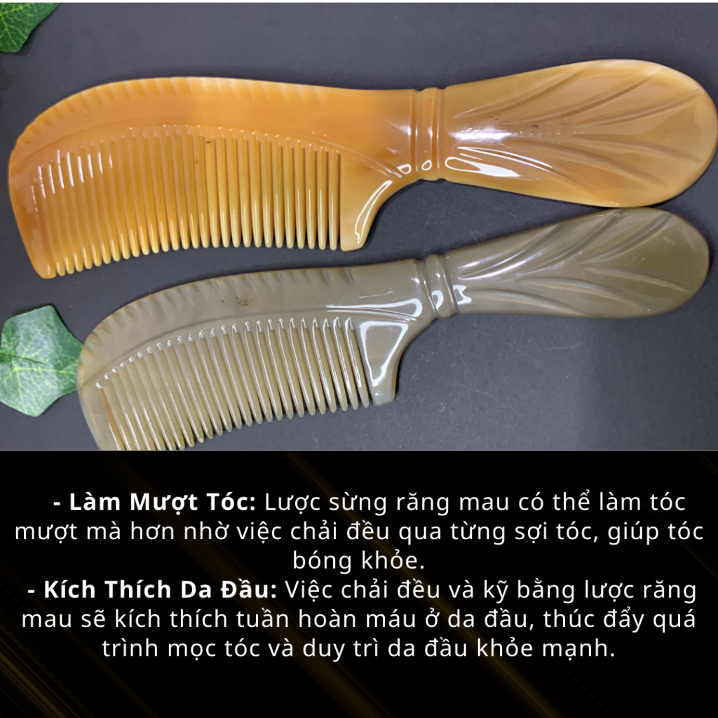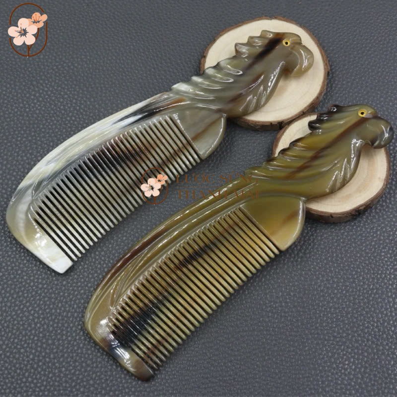 Lược sừng trâu mỹ nghệ cao cấp, lược chải tóc massage gỡ rối ngăn rụng tóc giảm đau đầu chóng mặt