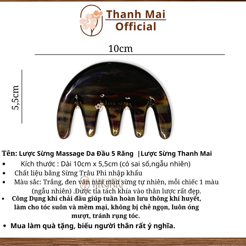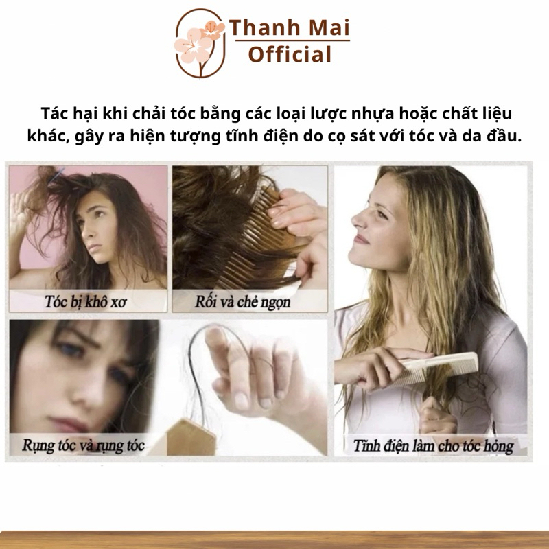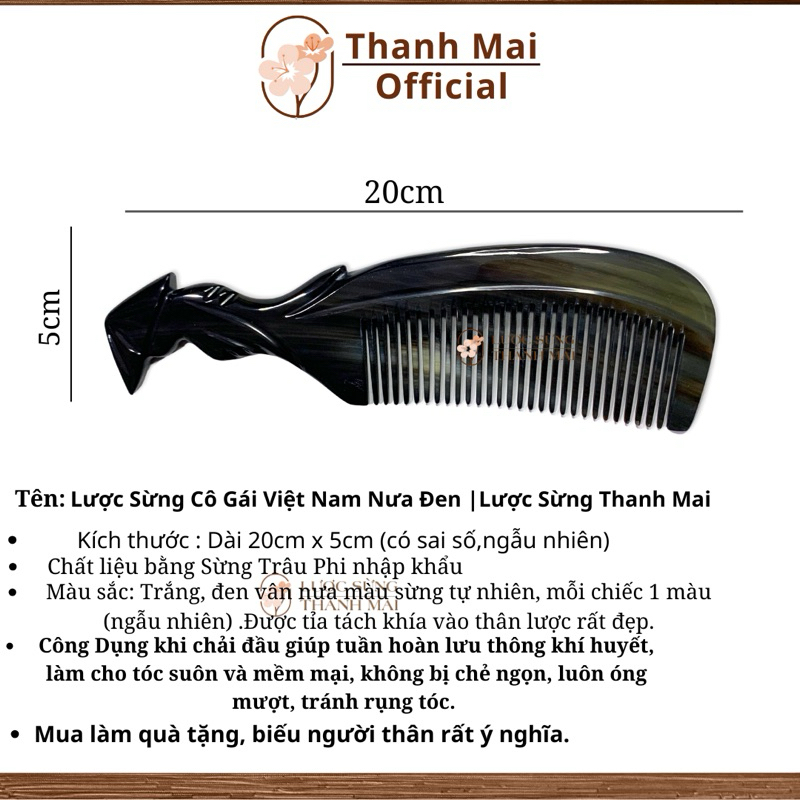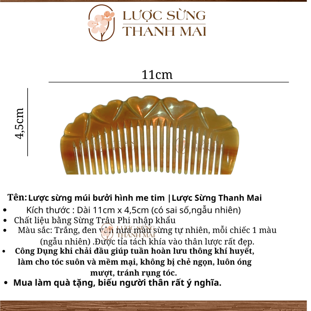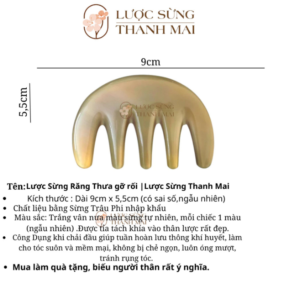 Lược sừng trâu mỹ nghệ cao cấp, lược chải tóc massage gỡ rối ngăn rụng tóc giảm đau đầu chóng mặt