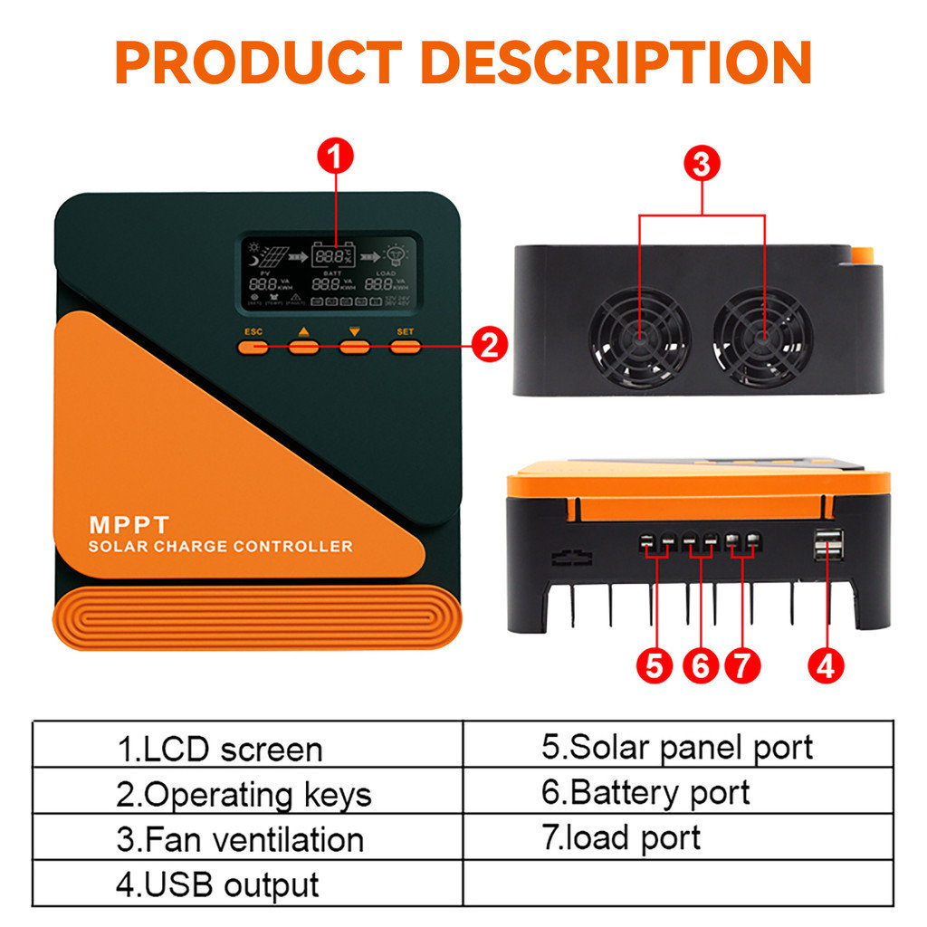 MPPT 60A-Bộ Điều Khiển Sạc Năng Lượng Mặt Trời MPPT 60A 100V 12V 24V mã GM-D60