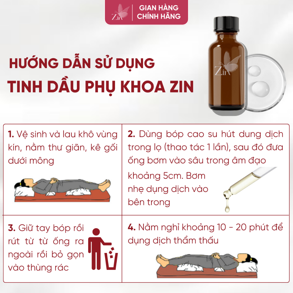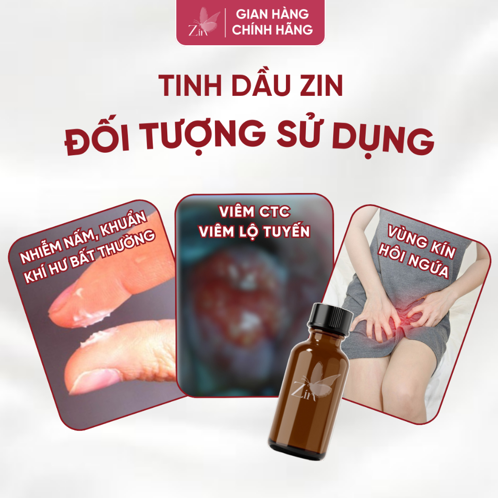 Tinh dầu phụ khoa Zin - Xử lý viêm phụ khoa, nấm candida, tạp khuẩn, hôi ngứa, rộng thâm