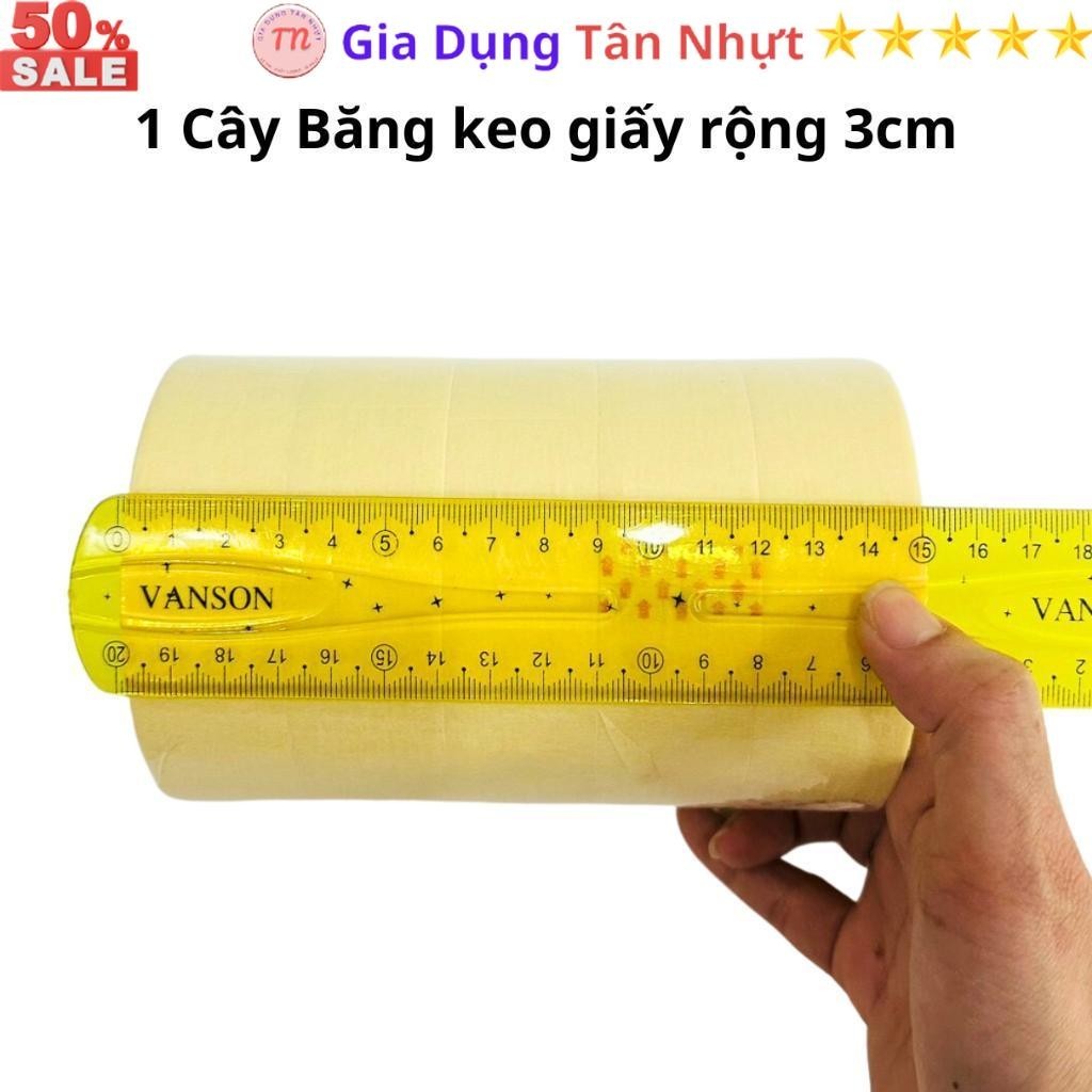 SKU121 - 1 Cây Băng keo giấy , rộng 3cm, dài 22 mét mỗi cuộn, lõi giấy 3mm - 1 cây có 5 cuộn - GDTN