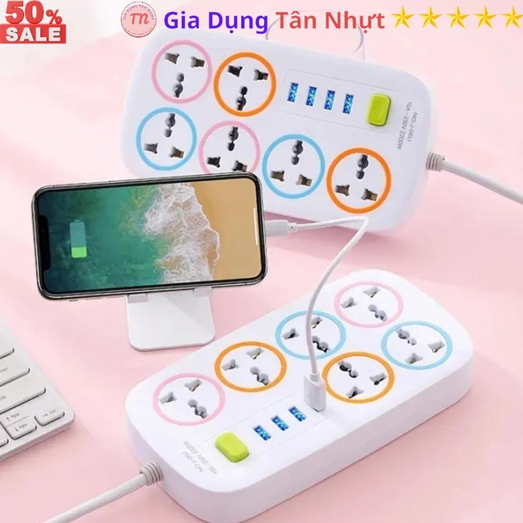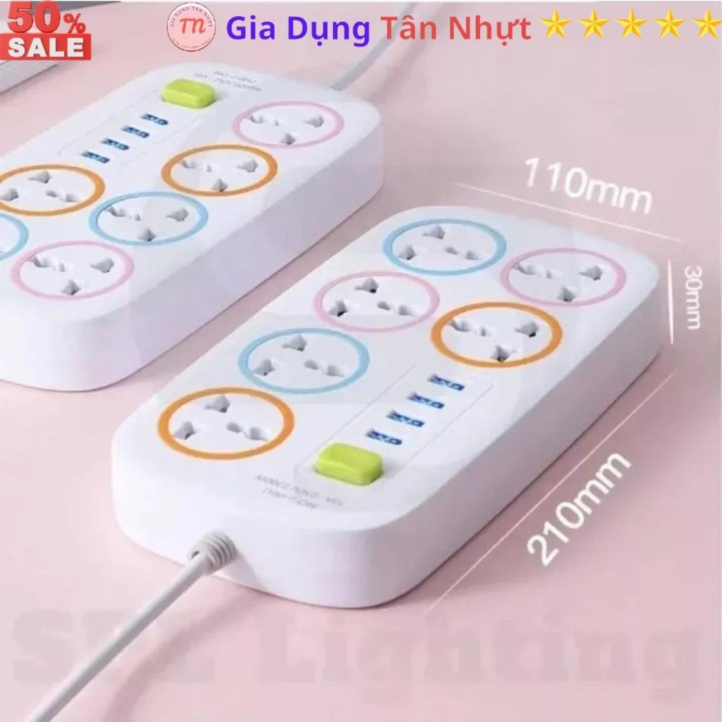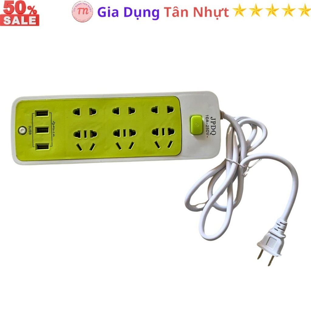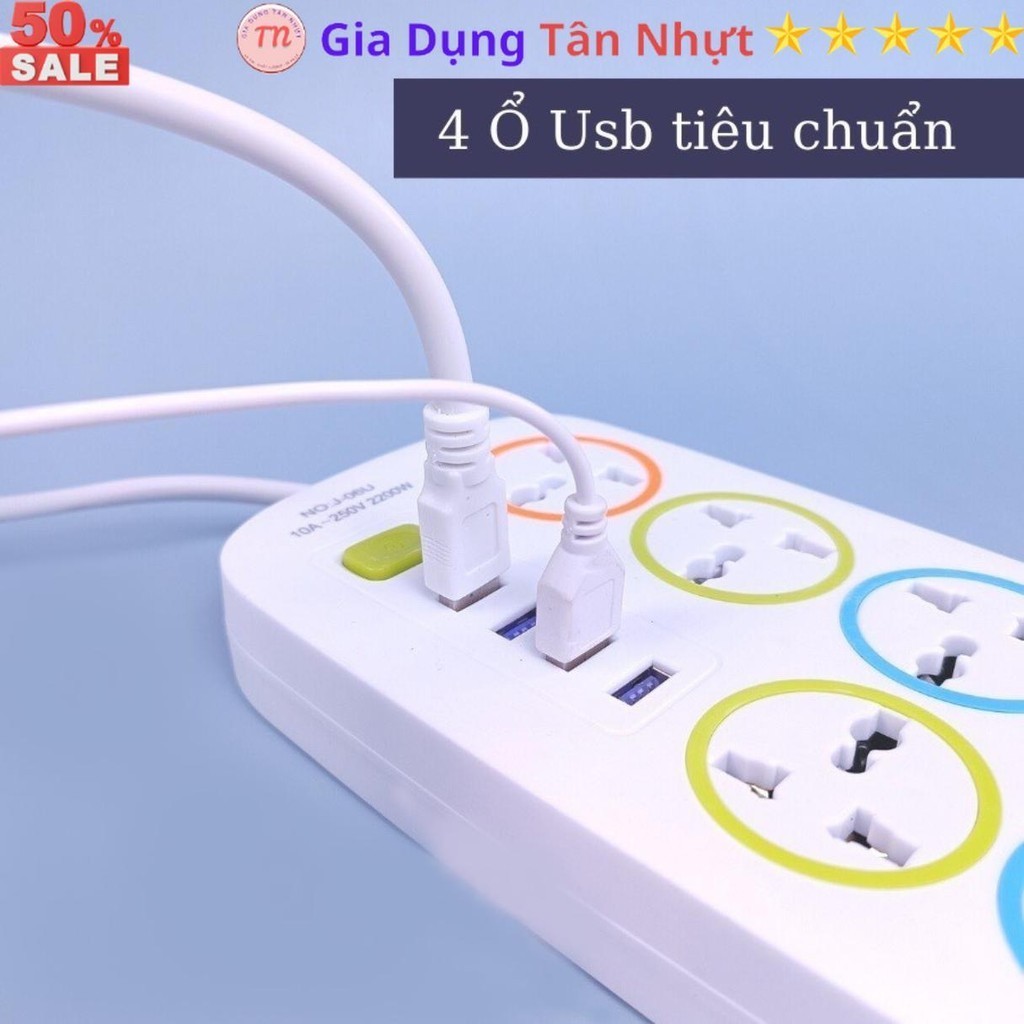 SKU31 - Ổ cắm điện đa năng J06U, ổ điện 6 lỗ cắm, 4 cổng USB 5v 2A sạc điện thoại, dây dài 1 métp