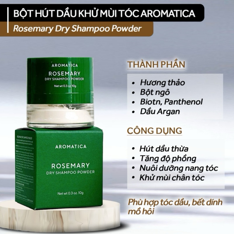 Phấn gội khô AROMATICA Rosemary Dry Shampoo Powder 10g