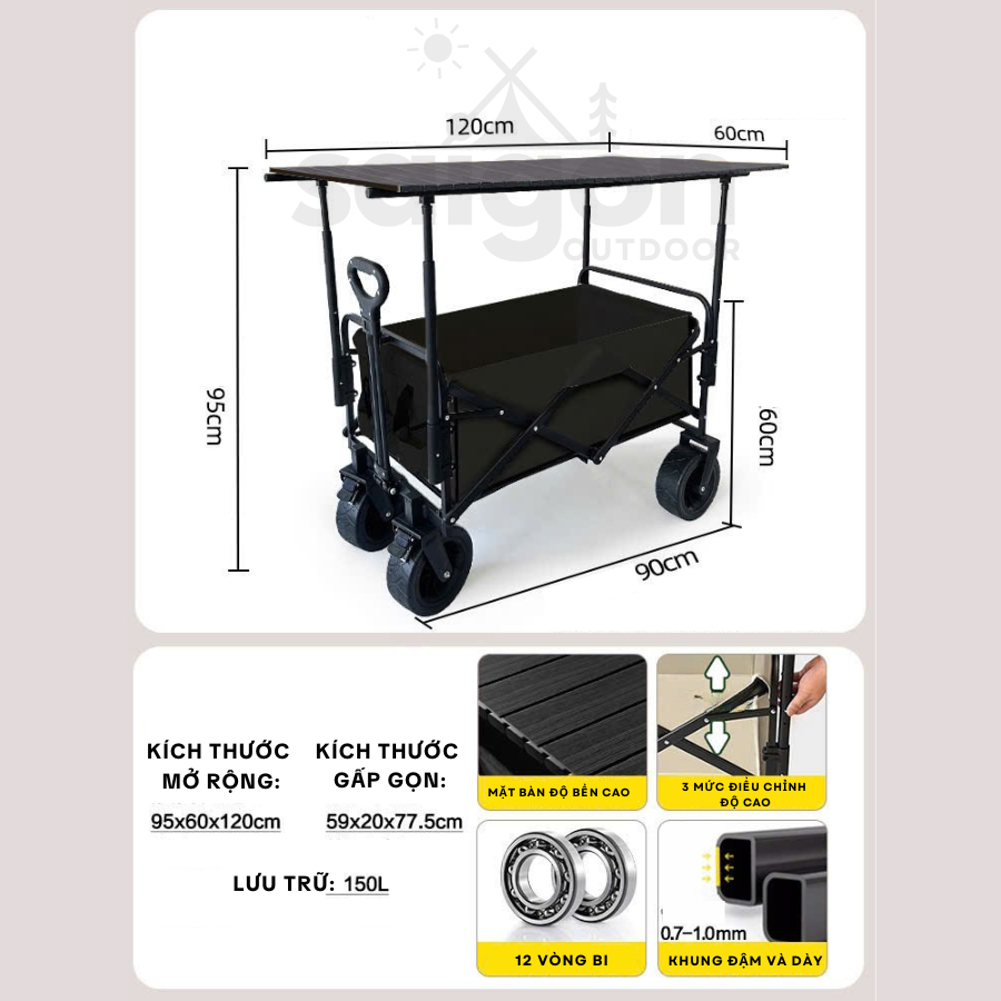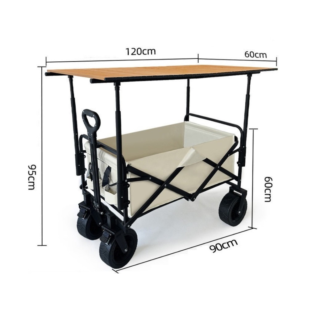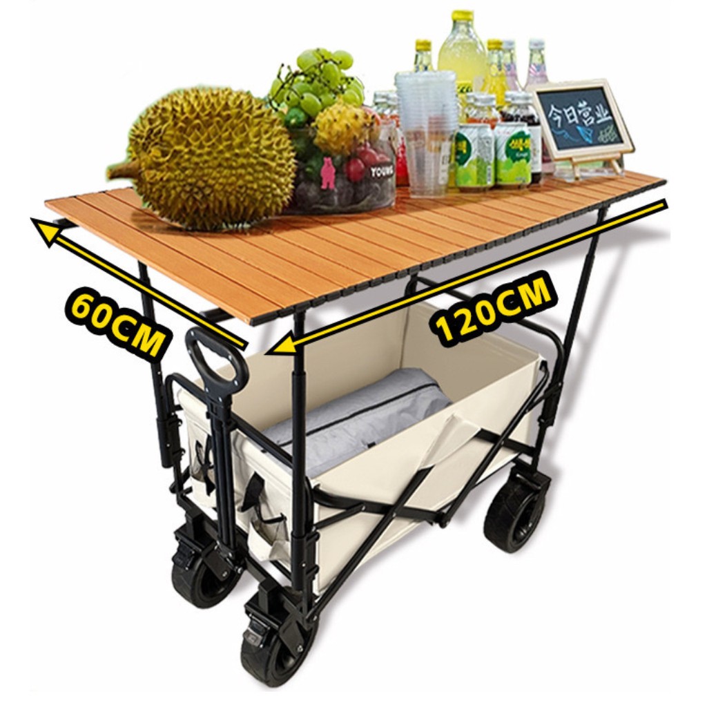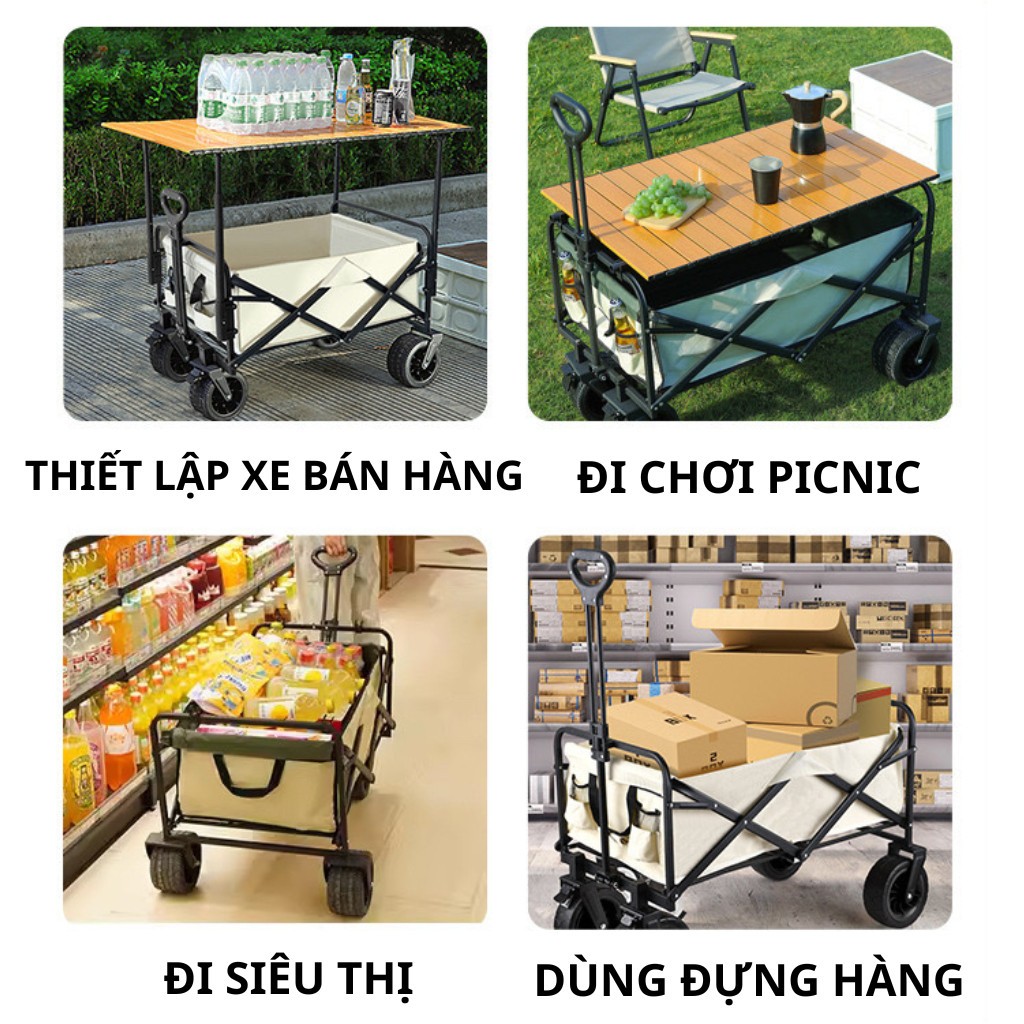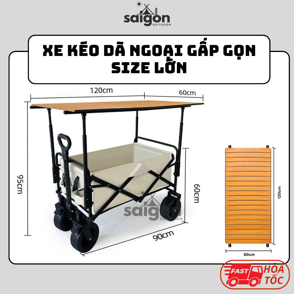 Xe kéo dã ngoại, kích thước xe lớn kèm mặt bàn nâng cao, có tay đẩy di động ngoài trời, gập gọn đa năng - Saigon Outdoor