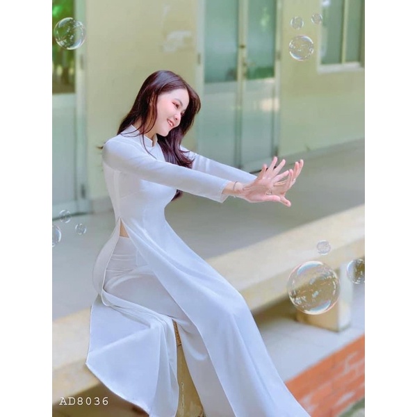 Áo dài trắng học sinh lụa mỹ cao cấp có kèm quần dáng truyền thống co giãn tốt.ÁO DÀI BẢO HIẾU