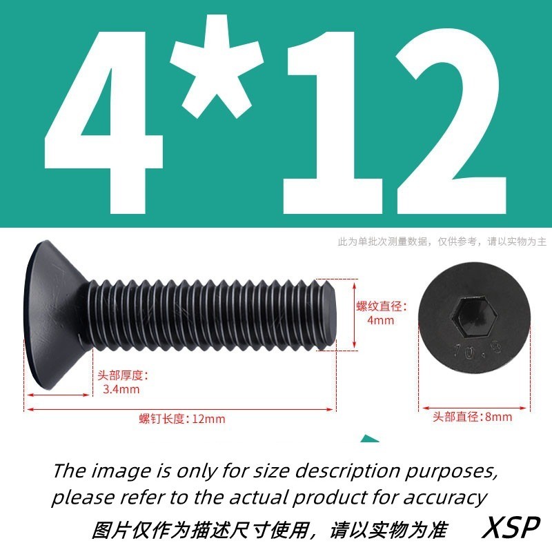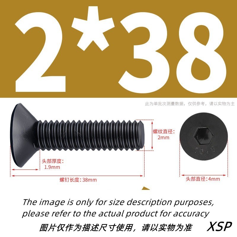 Ốc Bulong M1.6 M2 M2.5 M3 M4 M5 M6 Lục Giác đầu bằng Thép Đen Độ cứng 10.9